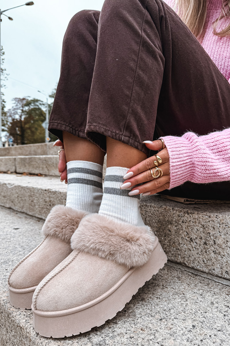 Béžové dámské sněhule Querina s pohodlnou platformou, měkkým vnitřním zateplením a kožešinou. Dekorativní výšivka dodává botám elegantní detail. Boční zip umožňuje snadné nazouvání a robustní podrážka zajišťuje stabilní chůzi. Ideální volba pro zimní městské i volnočasové outfity.