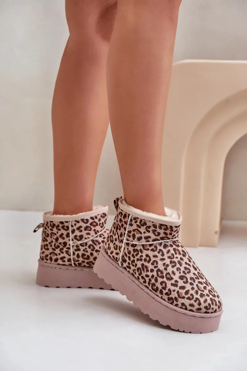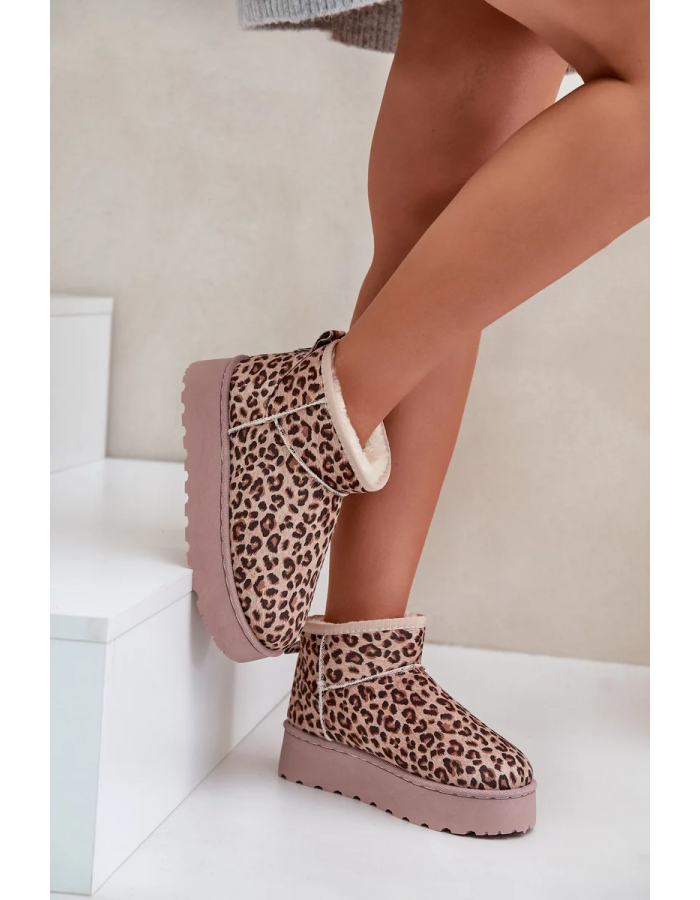 Dámské sněhule s leopardím vzorem na platformě, zateplené kožíškem, hnědé Xamella 40