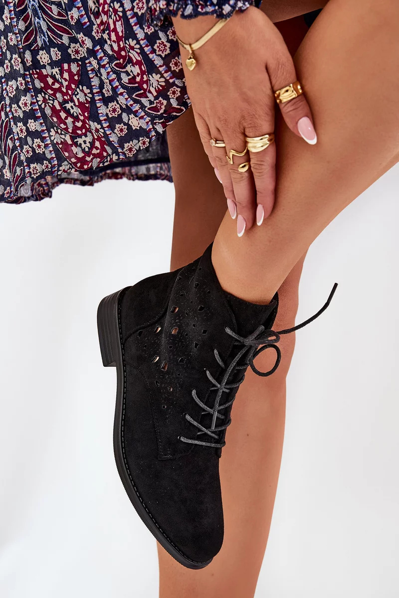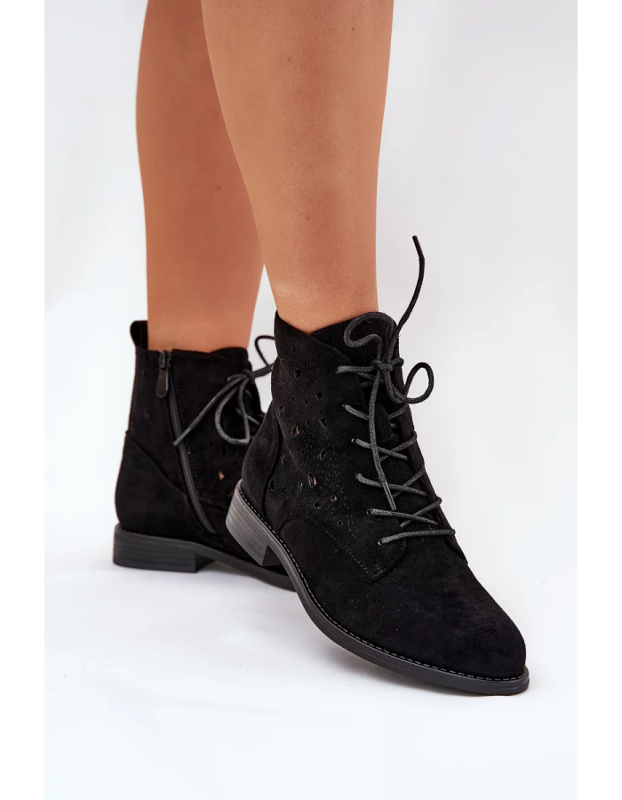 Stylové kotníkové botky S.Barski v černém provedení kombinují moderní design a pohodlí. Botky jsou zateplené, takže udrží nohy v teple během chladnějších dní. Šněrování umožňuje individuální nastavení šířky a pevné uchycení nohy. Perforovaný vzor dodává botám elegantní a módní detail, zatímco stabilní podešev podporuje pohodlnou a jistou chůzi.
