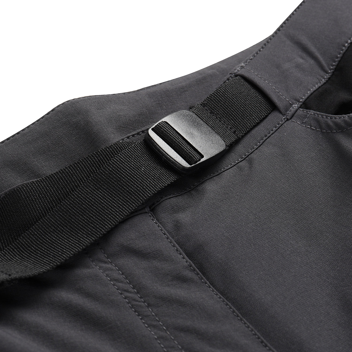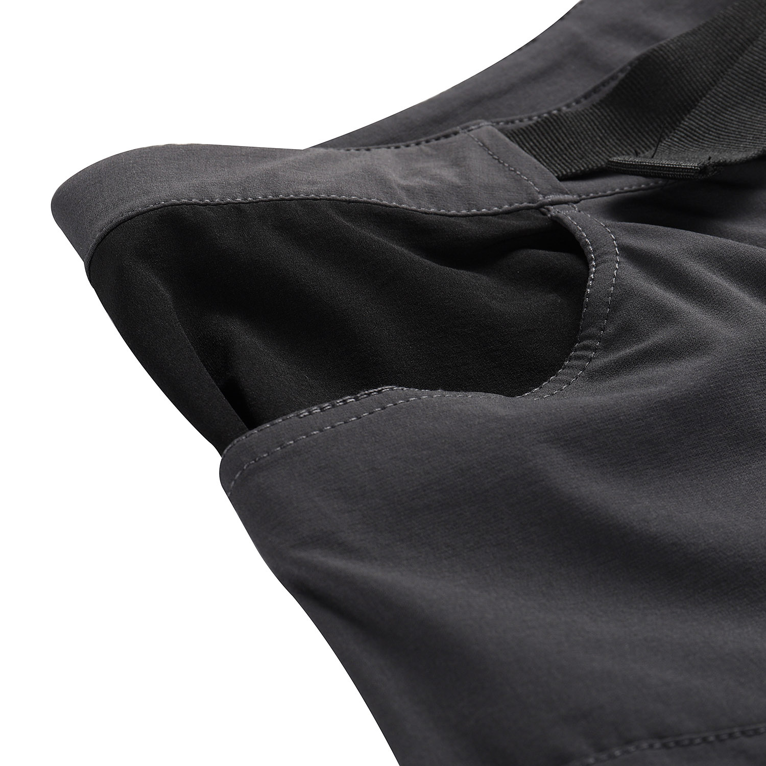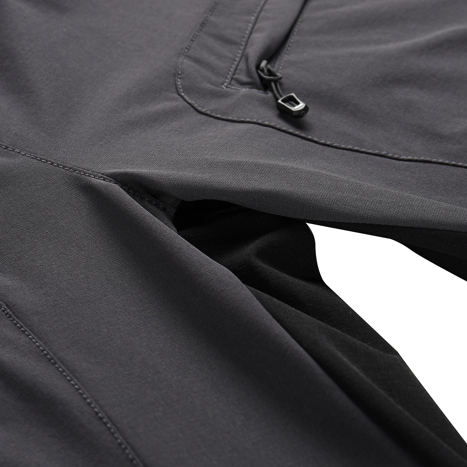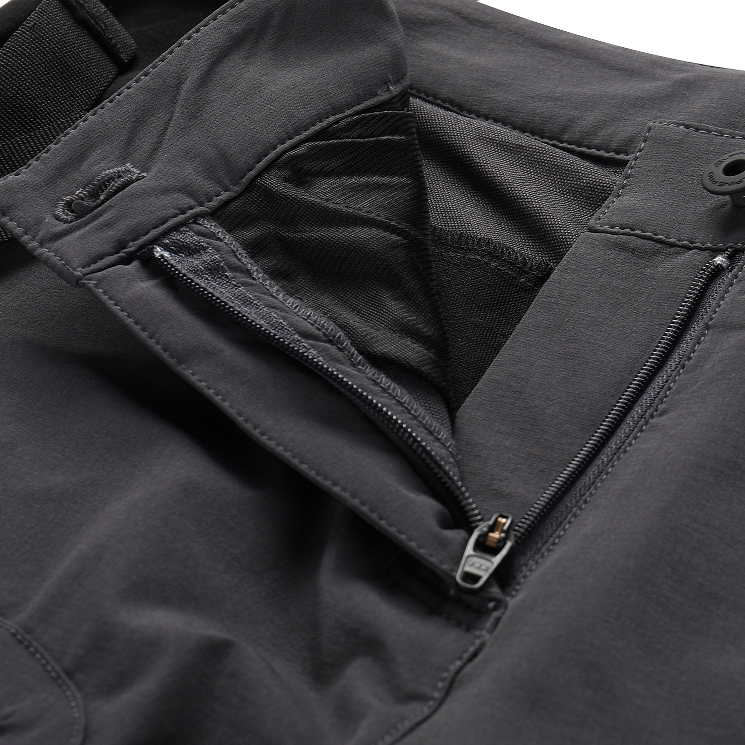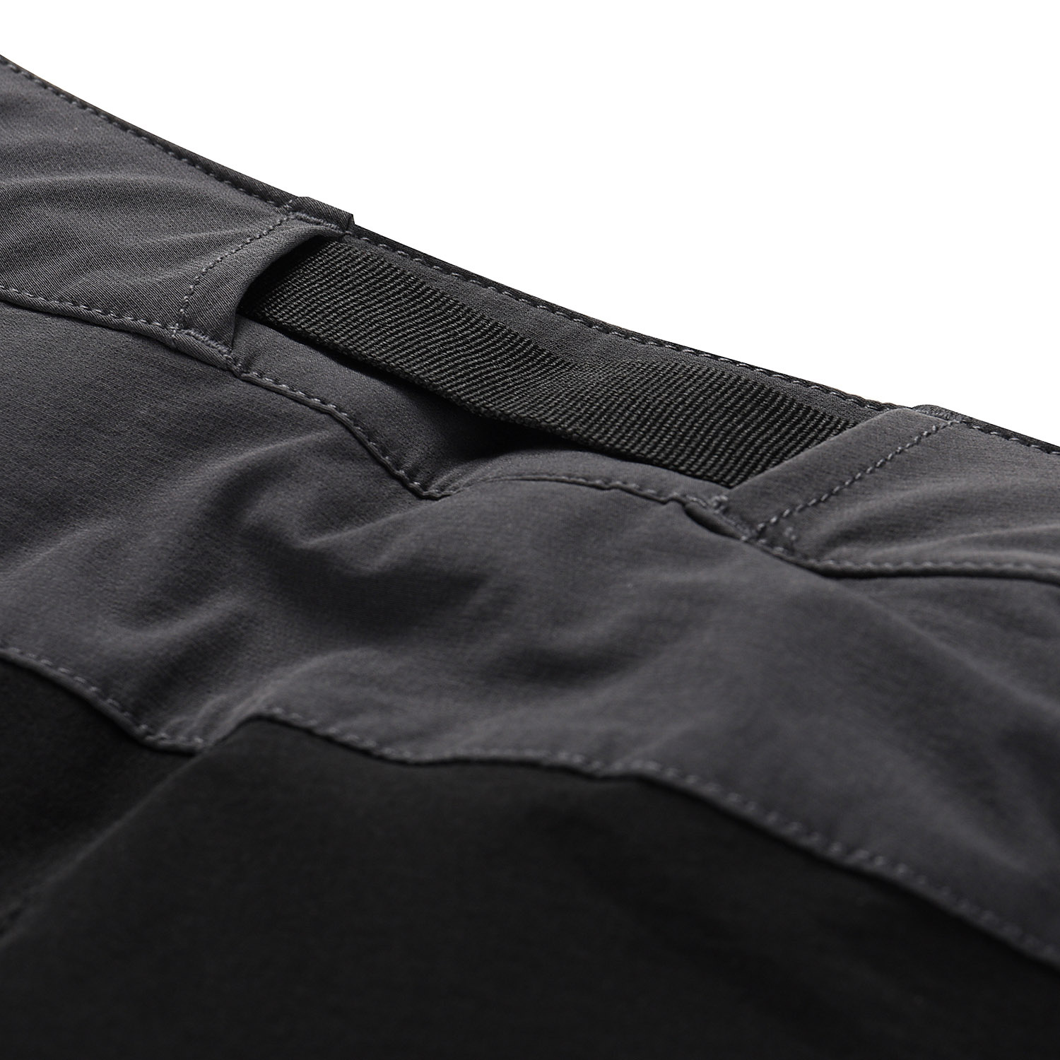 Kalhoty mají anatomicky tvarovaný střih, díky kterému lépe padnou na postavu. K pohodlnému nošení přispívá také pásek s plastovou sponou, který umožňuje snadné přizpůsobení velikosti. Pro větší komfort při pohybu jsou kolena tvarovaná a spodní část nohavic lze rozepnout. Kalhoty disponují čtyřmi kapsami – dvě hlavní a dvě boční se zipy, které slouží jako praktické úložné prostory. Bezpečnost při horších světelných podmínkách zvyšuje reflexní prvek, který je umístěný na kalhotách.