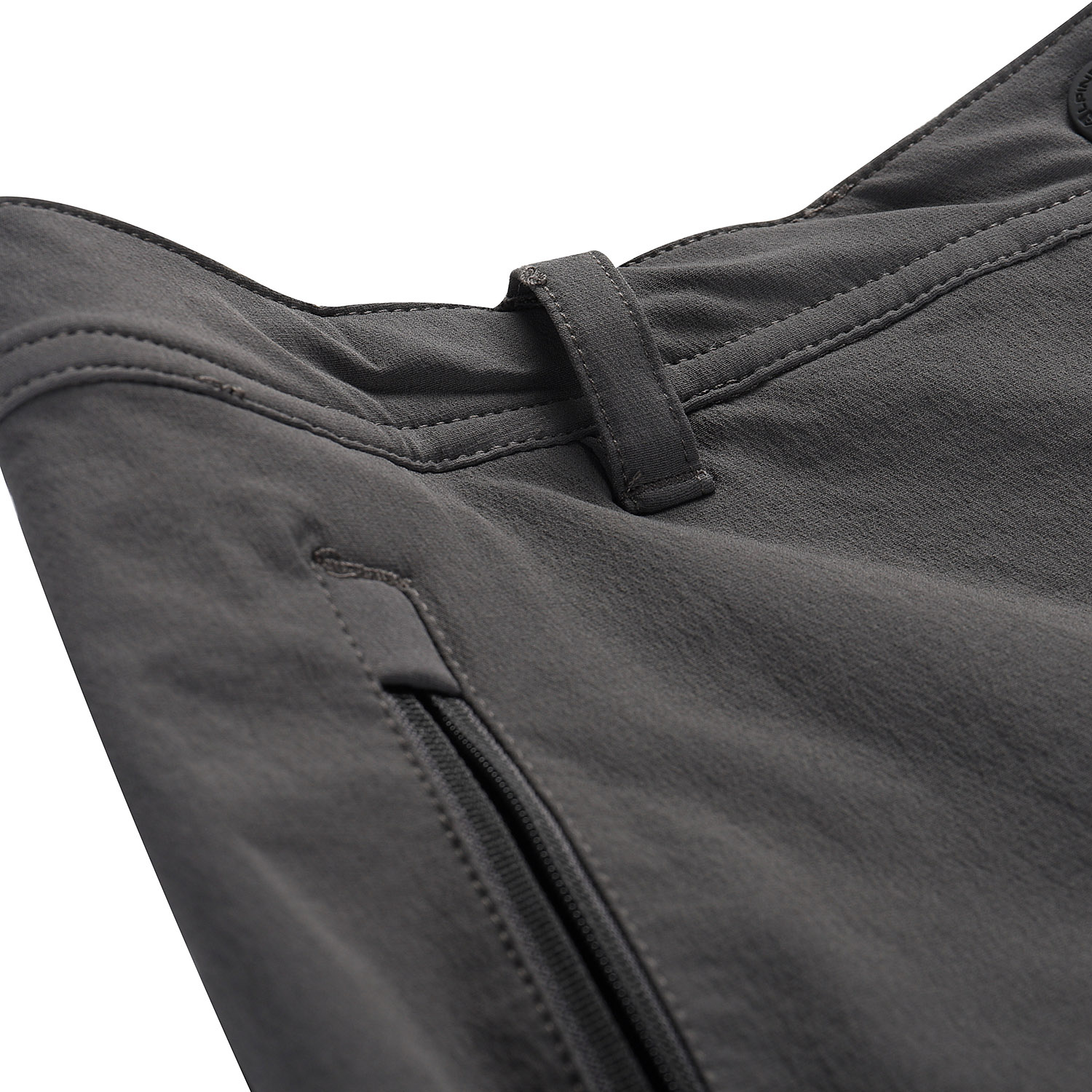 Polopřiléhavý střih se zvýšeným pasem na zadním dílu, všitým do gumy a doplněným poutky na pásek nabízí skvělé přizpůsobení postavě i pohodlí při delším nošení. Pro maximální volnost pohybu jsou kolena anatomicky tvarovaná a spodní část nohavic je opatřena praktickým rozepínáním na vnitřní straně, což usnadňuje obouvání a přizpůsobení obuvi. Kalhoty disponují třemi funkčními kapsami – dvěma předními a jednou zadní – všechny se značkovými YKK zipy a delšími taháčky, které umožňují snadnou manipulaci i v rukavicích. Reflexní potisk na předním dílu zvyšuje bezpečnost při zhoršené viditelnosti, zatímco moderní design podtrhuje outdoorový charakter.