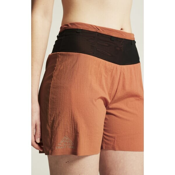 Dámské běžecké šortky 2 v 1 CRAFT PRO Trail jsou velmi lehké, prodyšné a poskytují spoustu kapes pro uložení výživy nebo jiných drobností.