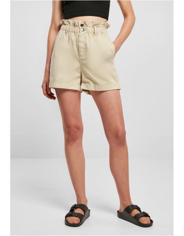 Vzhled těchto dámských paperbag šortek vyzařuje svěží závan módního vzduchu. Šortky sedí vysoko v pase, zatímco pas představuje nařasený styl papírové tašky. Sportovní vyhrnuté manžety dokonale ladí s designem, který doplňují dvě integrované zadní kapsy a dvě boční kapsy. Dámské šortky jsou vyrobeny z příjemného bavlněného kepru a mají regular fit.
