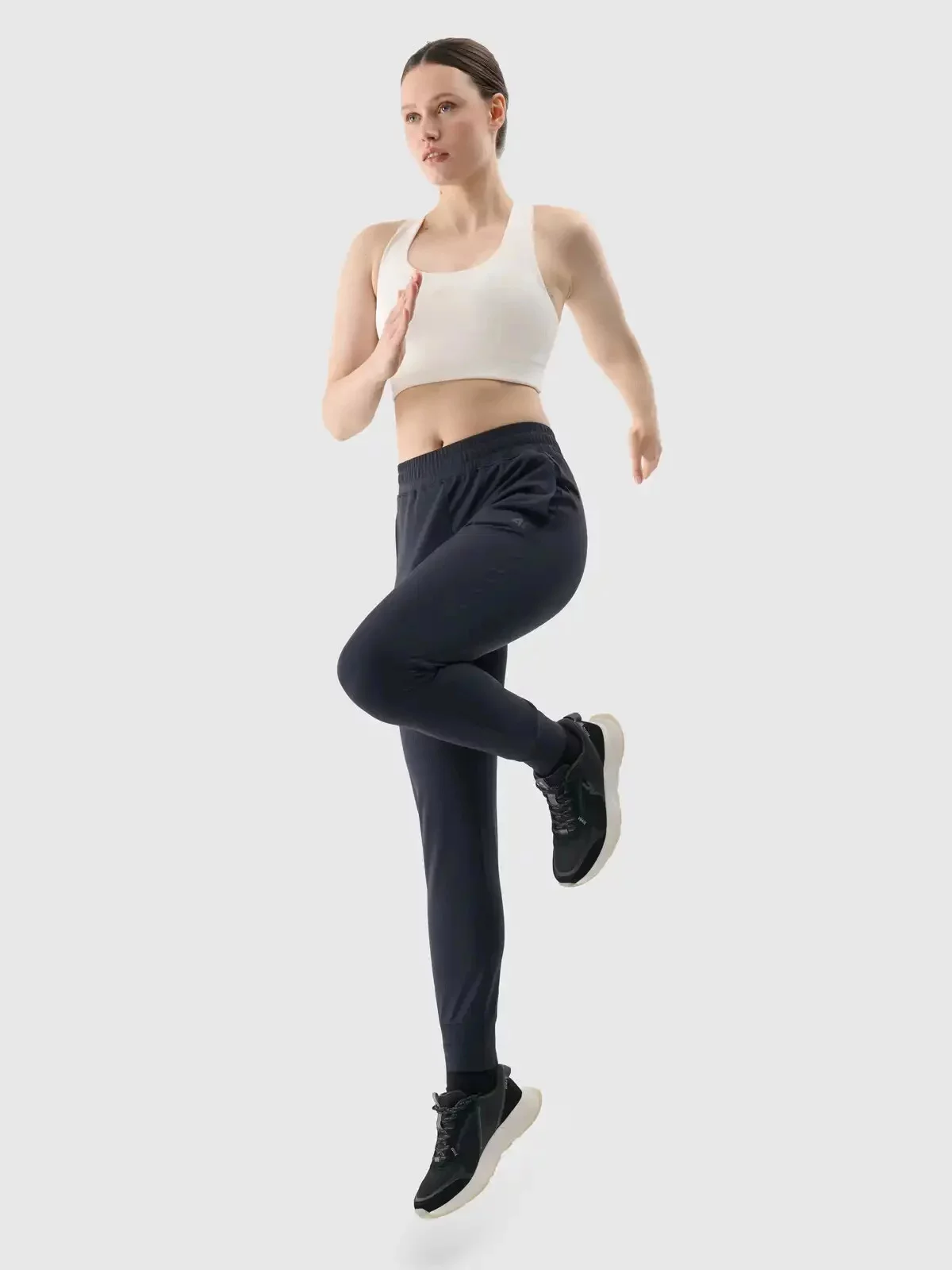 Dámské sportovní kalhoty mají rychleschnoucí vlákny s technologií 4FDry, která podporují odvádění vlhkosti daleko od těla. Na bocích jsou 2 otevřené kapsy. Elastický pás s vnitřním nastavením na šňůrky.