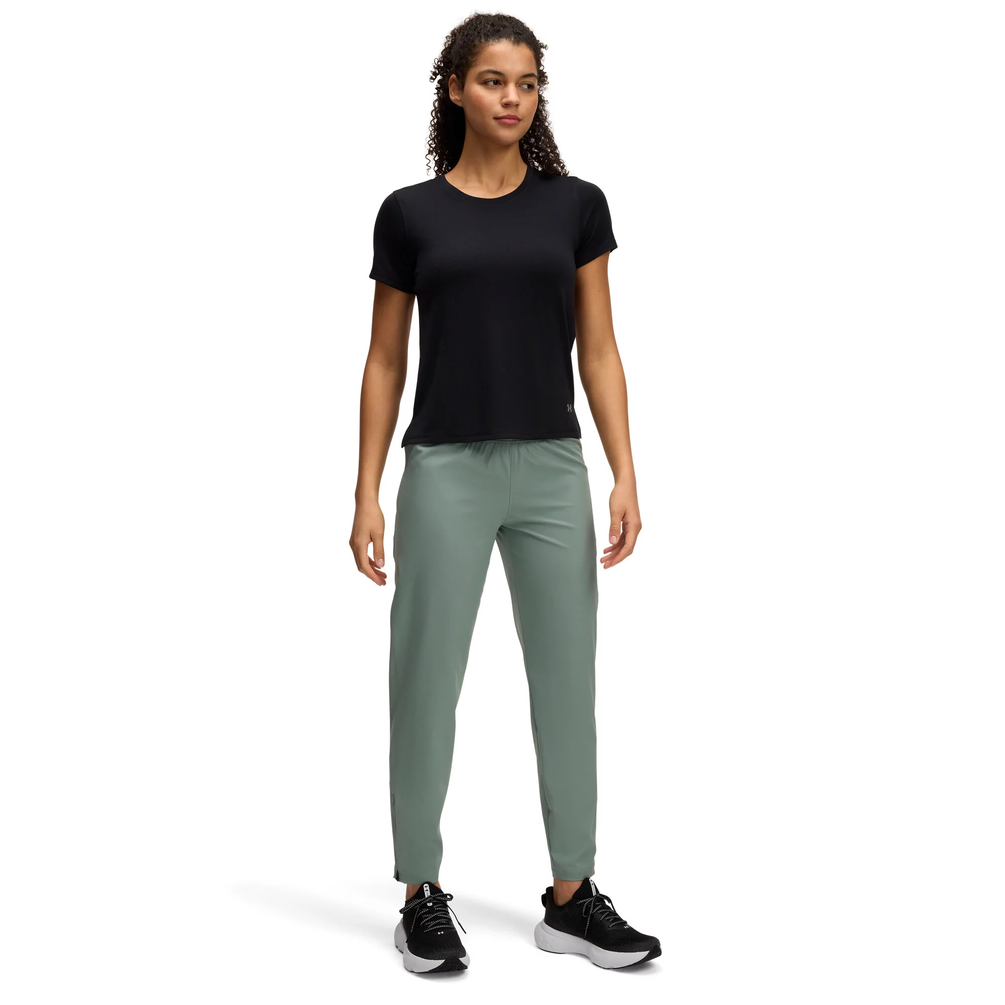 Dámské sportovní kalhoty z odolné strečové tkaniny s technologií UA Storm poskytují skvělý pocit z nošení i za nepříznivých podmínek.