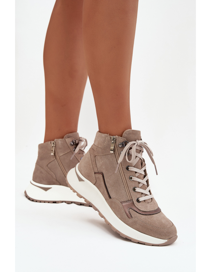 Dámské kotníkové boty značky Zazoo ve sportovním stylu z přírodního semiše spojují pohodlí s módním a moderním vzhledem.