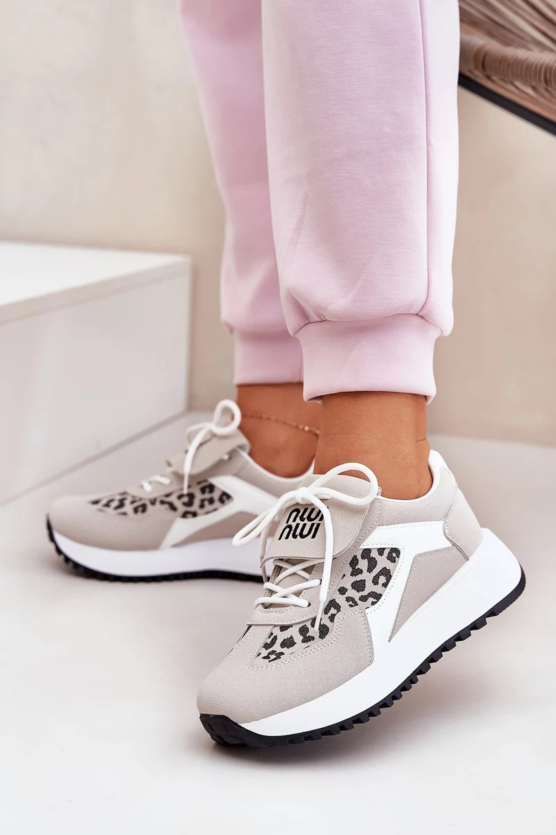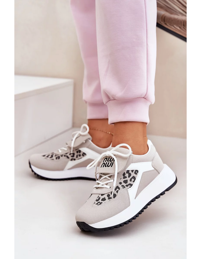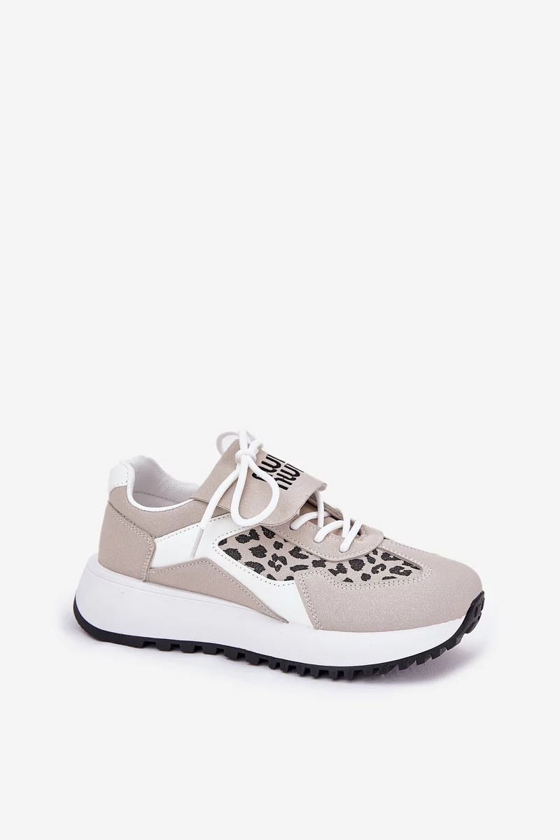 Dámské sportovní sneakersy Pumbes v kombinaci bílé a béžové barvy s panterím vzorem spojují pohodlí s módním a výrazným designem. Robustní platformová podrážka opticky prodlužuje postavu a zároveň zajišťuje stabilní a komfortní došlap, ideální pro celodenní nošení. Stylový vzor a barevné provedení dodávají teniskám šmrnc a snadno je sladíte s různými outfity – od casual městského stylu až po trendy streetwear.
