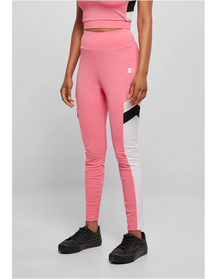 Atletický styl těchto dámských legín je definován širokými vsadkami ve tvaru šípu na vnější straně obou nohavic. Díky pružnému strečovému žerzejovému materiálu a vysokému vypasovanému pasu, který sahá až k pupíku, se velmi pohodlně nosí. Legíny jsou přirozeně také úzkého střihu a jemně značkové s malým potiskem loga Starter na levém stehně.