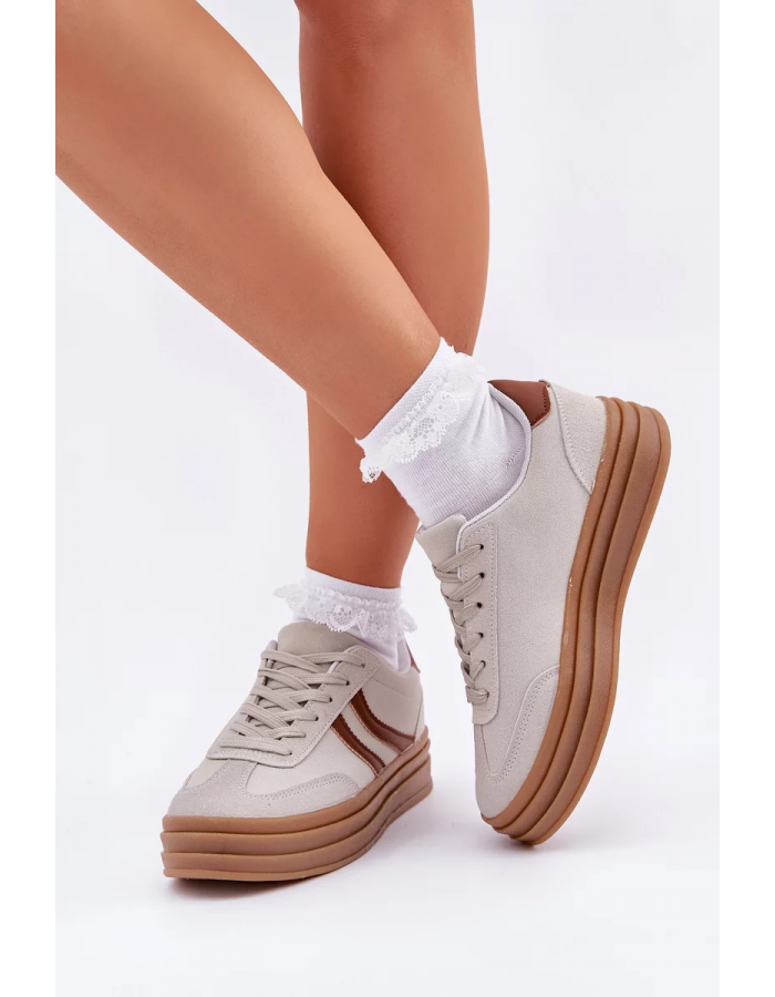 Šedé sneakersy na platformě skvěle doplní outfit v neutrálních barvách, jako je bílá, černá nebo béžová, a podtrhnou moderní vzhled.