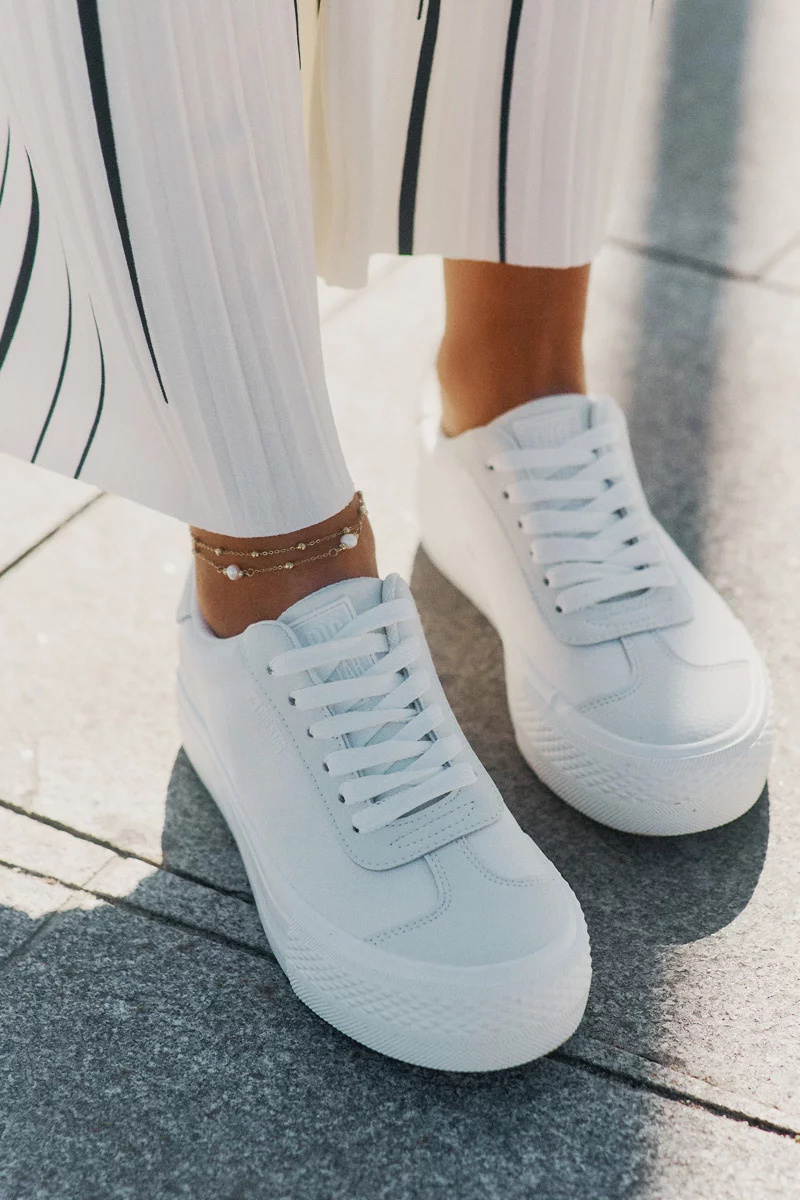 Nadčasová klasika s moderním twistem! Dámské tenisky Big Star RR274337 v bílé barvě s platformovou podrážkou přinášejí styl i pohodlí do každodenního nošení. Vysoká gumová platforma nejen opticky prodlouží postavu, ale také zajišťuje měkčí došlap a lepší izolaci od povrchu.