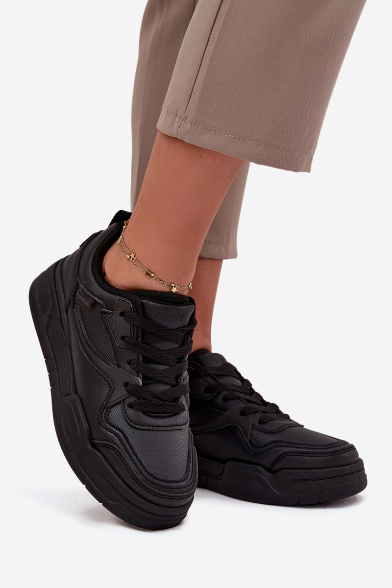 Elegantní dámské tenisky Big Star v černé barvě na platformě jsou ideální volbou pro ženy, které hledají univerzální obuv kombinující styl, pohodlí a moderní vzhled. Vyrobené z kvalitních materiálů, které zajišťují odolnost a komfort. Technologie HI-POLY SYSTEM poskytuje optimální odpružení a podporu chodidla při každodenním nošení, zatímco platformová podrážka dodává postavě elegantní zvýšení bez ztráty pohodlí.