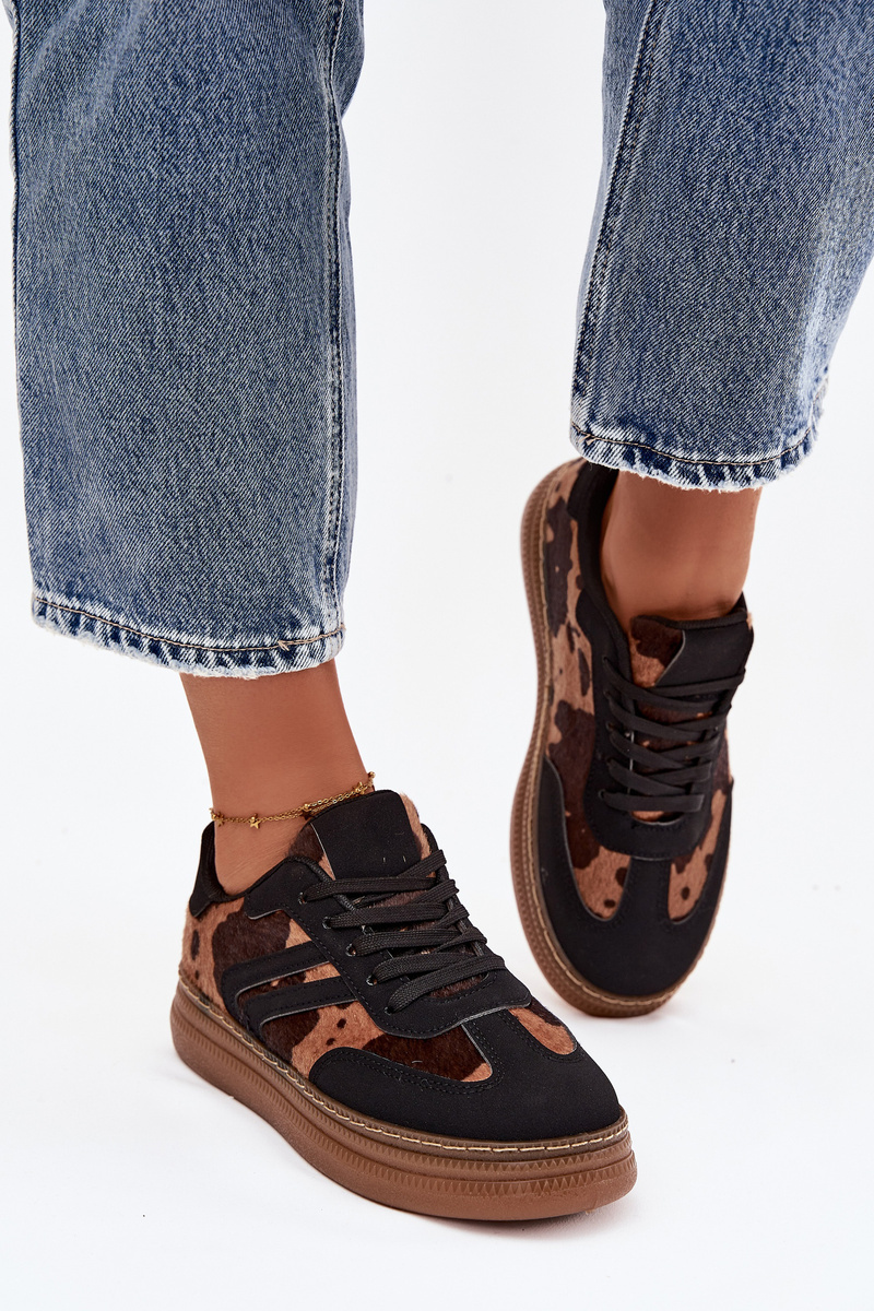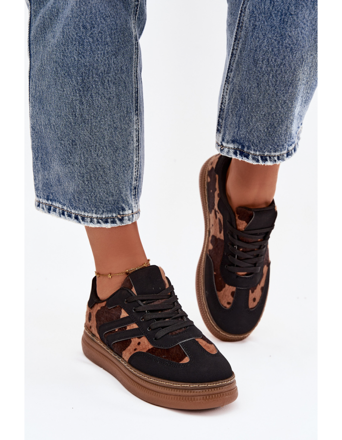 Černé dámské tenisky Denissa na platformě přinášejí moderní a výrazný vzhled díky stylovému skvrnitému vzoru. Vyšší platforma zajišťuje pohodlný krok a zároveň opticky prodlužuje postavu. Lehká a pohodlná konstrukce z nich dělá ideální volbu pro každodenní městský styl.