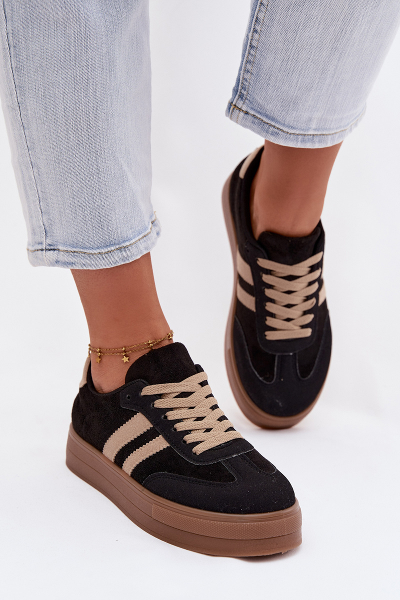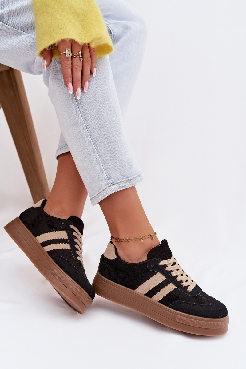 Dámské tenisky Giselia v černém provedení na platformě představují moderní a pohodlnou obuv pro každodenní nošení. Zvýšená podešev dodává teniskám současný vzhled a zároveň zajišťuje stabilní a komfortní došlap. Nadčasová černá barva působí univerzálně a snadno se kombinuje s městskými i volnočasovými outfity. Hlavní benefity: Platformová podešev pro moderní vzhled a pohodlí Stabilní konstrukce vhodná pro celodenní nošení Nadčasová černá barva snadno kombinovatelná Pohodlný střih pro každodenní využití Univerzální design pro město i volný čas Využití:Na běžné denní nošení, do města, na procházky, cestování i volnočasové aktivity. Tip:Černé tenisky na platformě skvěle doplní džíny, šaty i sportovně-elegantní outfity a dodají jim moderní charakter. Složení materiálu: Svršek: syntetický materiál / textil Vnitřní část: textilní materiál Platforma / podešev: syntetický materiál
