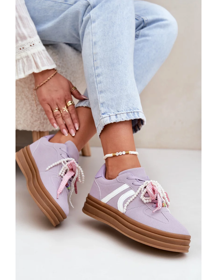 Dámské tenisky Vinness v trendy fialovém provedení kombinují pohodlí sportovní obuvi s módními detaily. Vyšší platforma opticky prodlužuje nohy a zároveň poskytuje komfortní a stabilní došlap. Stylové ozdoby dodávají teniskám výrazný a osobitý vzhled, který oživí každý outfit — od casual každodenního stylu až po výraznější street look.