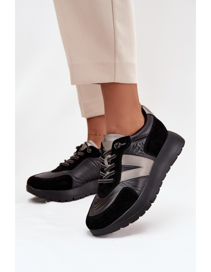Černé dámské tenisky Vinceza na platformě kombinují pohodlí s moderním a stylovým vzhledem. Vyšší platforma zajišťuje stabilní krok a opticky prodlužuje postavu, zatímco černá barva je univerzální a snadno kombinovatelná s různými outfity pro městský i volnočasový styl.