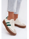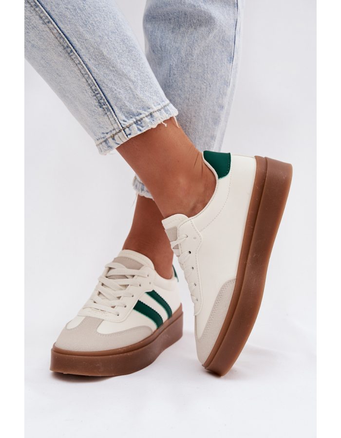 Dámské tenisky Elaraven v kombinaci bílé a zelené barvy spojují moderní design s pohodlím vhodným pro každodenní nošení. Platformová podrážka opticky prodlužuje postavu a zároveň zajišťuje stabilní a pohodlný došlap. Svršek z eko kůže je snadno udržovatelný a působí elegantně i sportovně. Kontrastní barevné provedení dodává teniskám svěží a výrazný look, který oživí různé outfity.