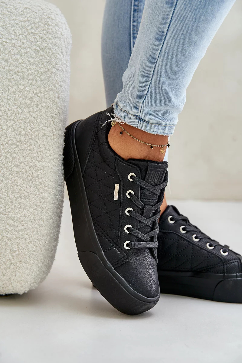 Tenisky Big Star vyrobené z eko kůže jsou stylová a pohodlná obuv na chladnější dny. Zabudované na platformě, dodávají charakter každému outfitu, zároveň zajišťují pohodlí při nošení. Zateplené obuvnickou podšívkou, skvěle se osvědčí v chladnějších dnech, poskytující teplo a pohodlí. Svršek zdobený prošíváním. Zaoblené špičky. Při výběru velikosti se prosím řiďte tabulkou velikostí.