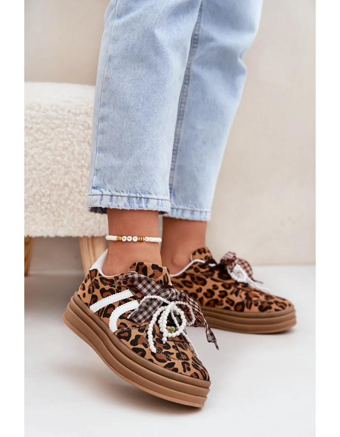 Dámské tenisky Vinness v hnědém provedení s panterím vzorem jsou stylovou volbou pro každodenní nošení. Zvýšená platforma dodává moderní vzhled a zároveň zajišťuje pohodlný došlap. Originální panterí potisk spolu s ozdobnými detaily vytváří trendy a výrazný design, který oživí váš outfit.