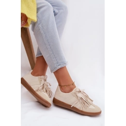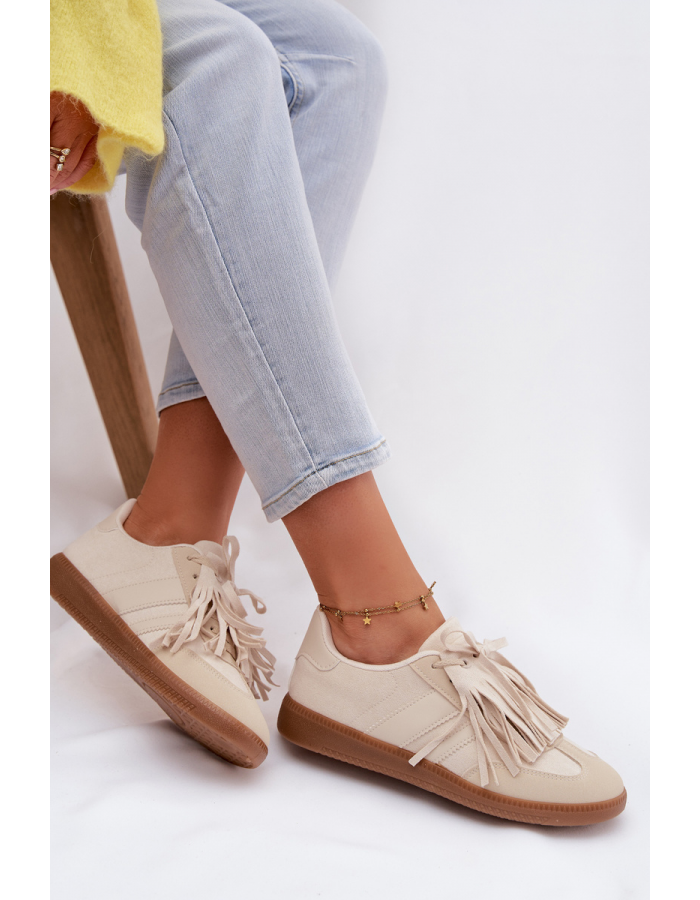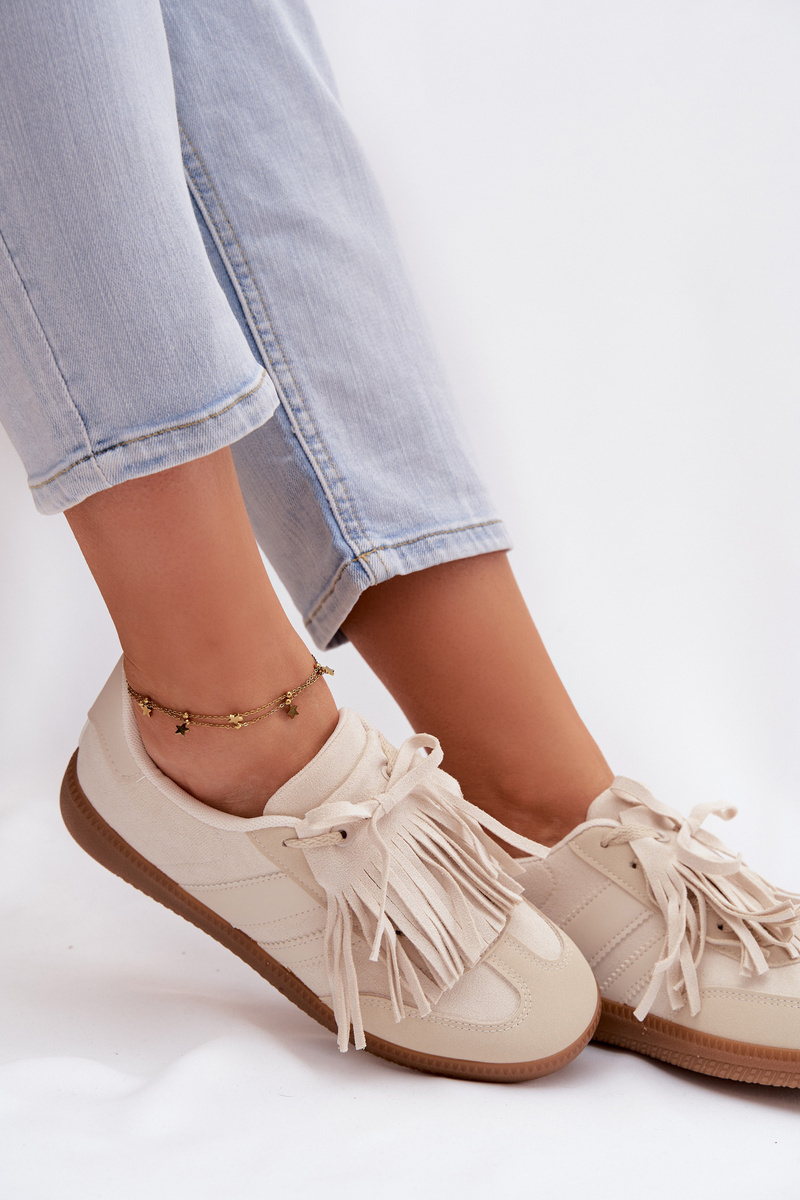 Béžové tenisky s třásněmi skvěle doplní jednoduchý outfit a dodají mu osobitý, módní charakter.
