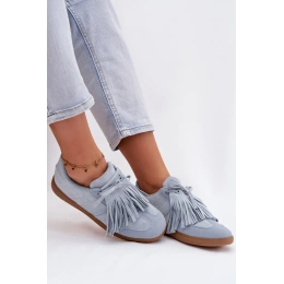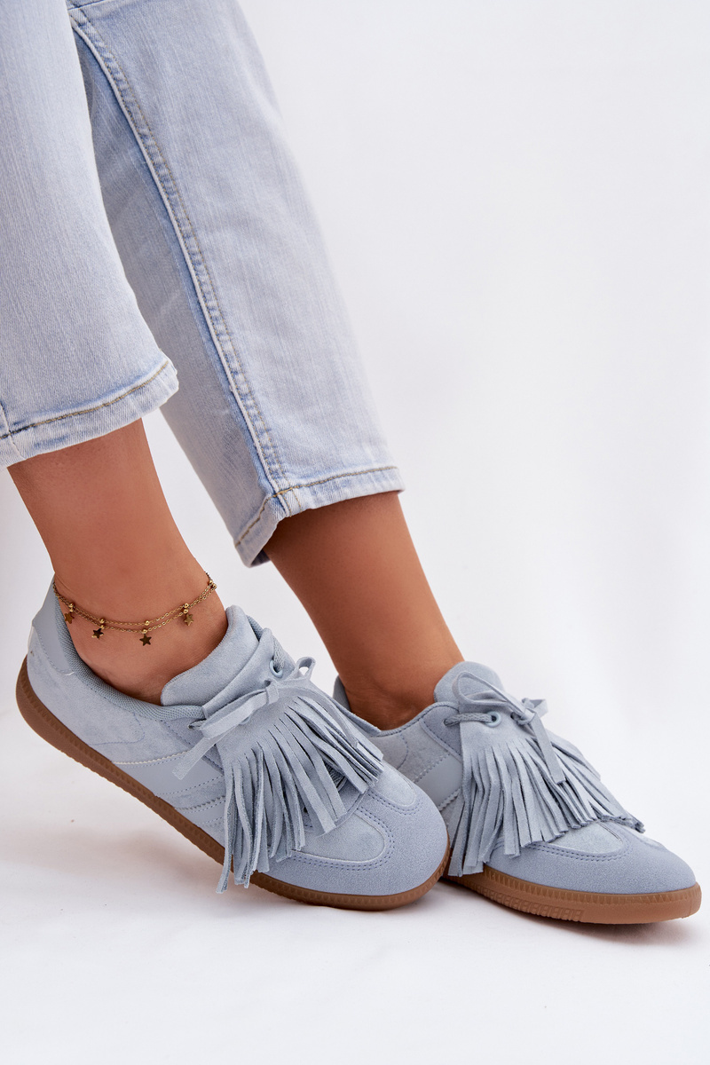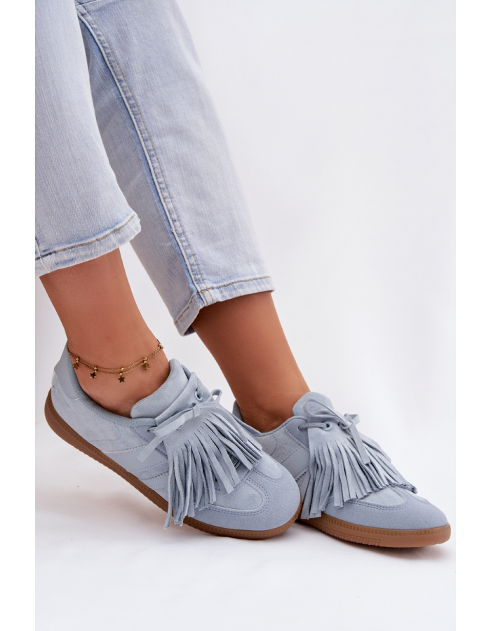 Modré tenisky s třásněmi krásně doplní džíny, bílé kalhoty i jednoduché šaty a dodají outfitu výrazný, ale stále elegantní akcent.