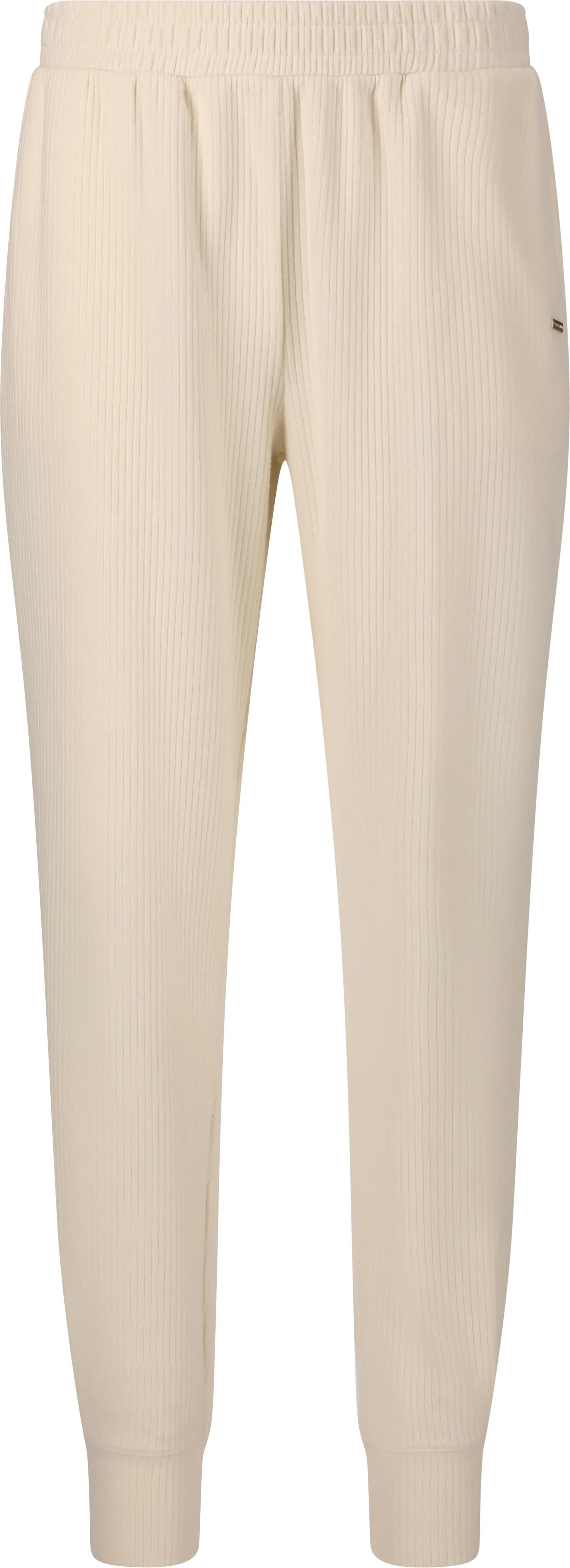 Tyto béžové dámské žebrované tepláky kombinují pohodlí s moderním minimalistickým stylem.