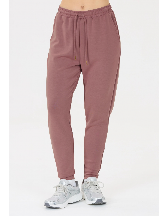 Elastický pas se stahovací šňůrkou umožňuje přizpůsobení obvodu pasu, zatímco zúžený střih nohavic dodává moderní siluetu.