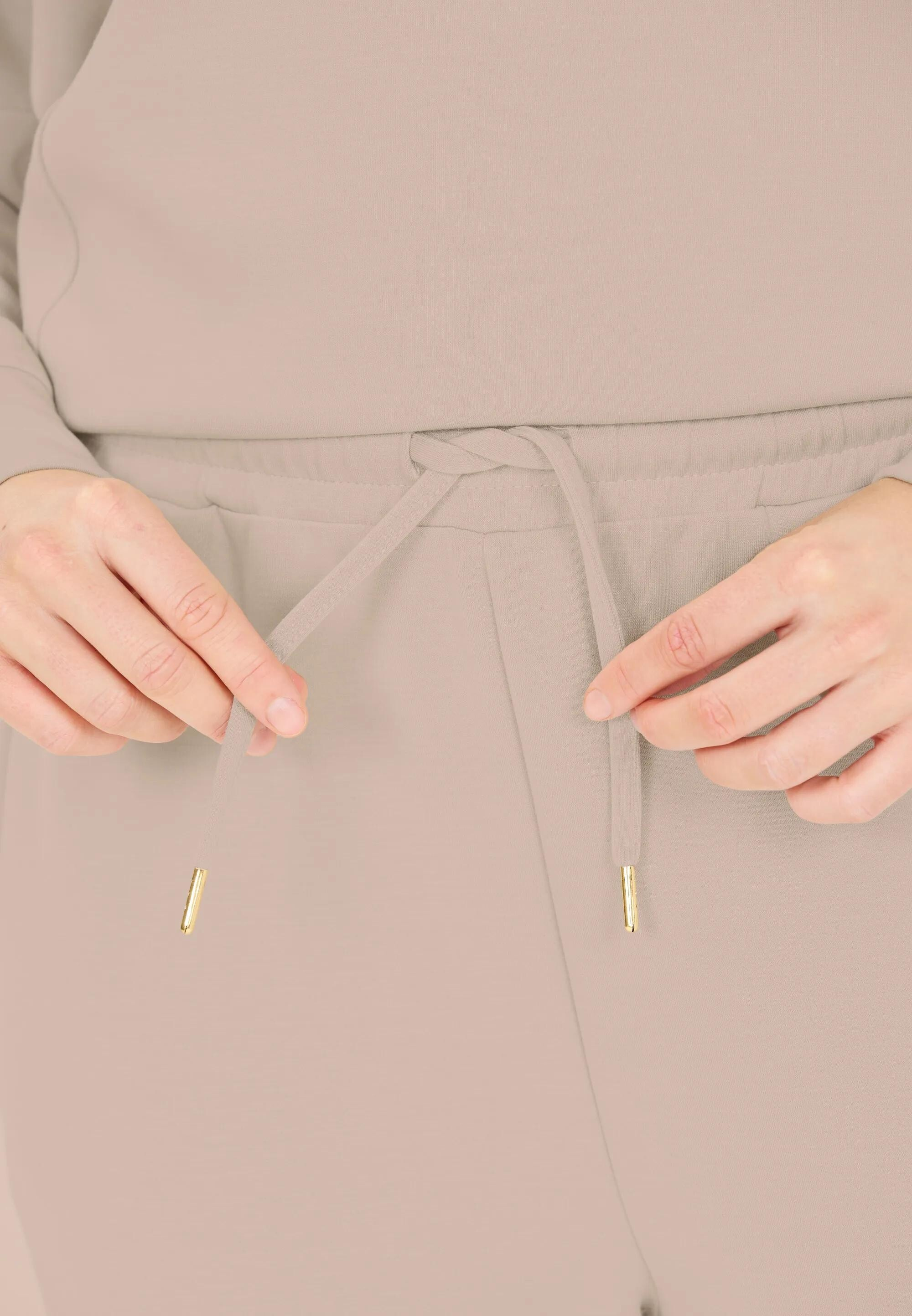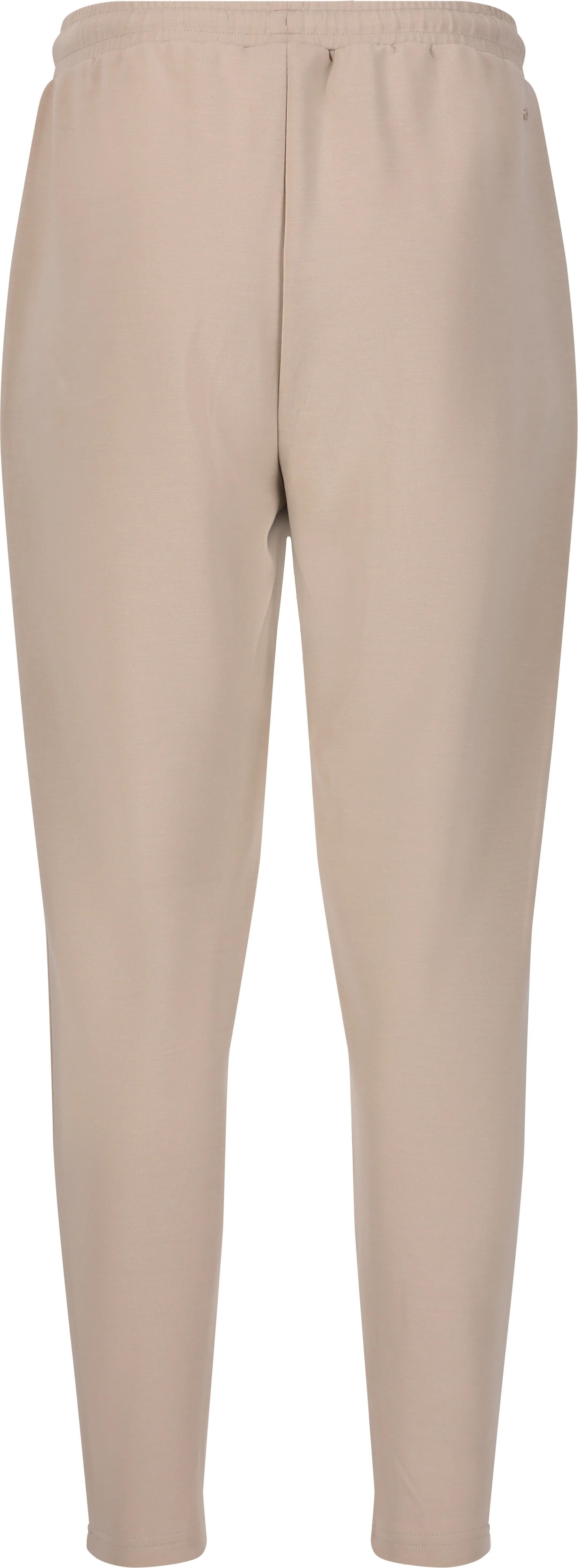 Elastický pas se stahovací šňůrkou umožňuje přizpůsobení obvodu pasu, zatímco zúžený střih nohavic dodává moderní siluetu.