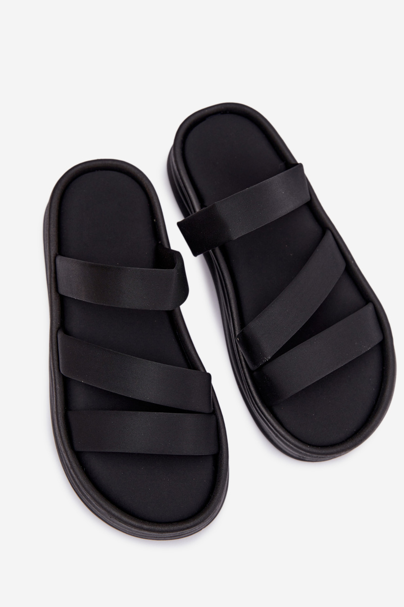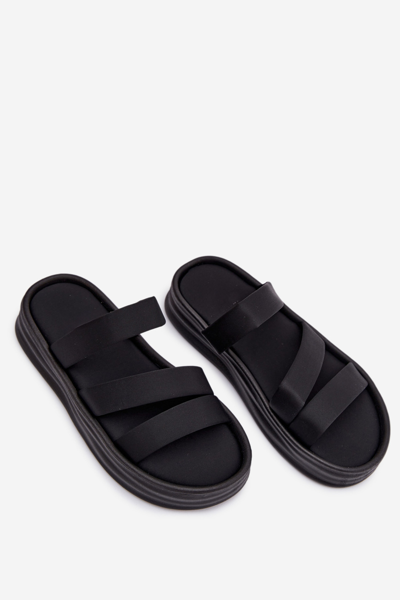 Černé textilní pantofle na platformě skvěle doplní minimalistické outfity, letní šaty i kraťasy a vytvoří moderní, uvolněný look.