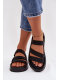 Dámské pantofle Liorine v černém provedení zaujmou moderním designem s platformovou podešví a textilními pásky, které dodávají obuvi lehký a současně stylový vzhled. Platforma poskytuje stabilní došlap a vyšší komfort při chůzi, zatímco otevřený střih je ideální pro teplejší dny. Nadčasová černá barva umožňuje snadné kombinování s městskými i letními outfity.