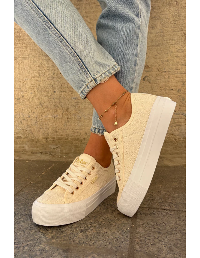 Dámské trampky Lee Cooper v béžové barvě jsou pohodlným volnočasovým modelem, který zaujme jemným krajkovým detailem. Díky němu působí boty žensky a lehce, takže se skvěle hodí k jarním a letním outfitům, nejen k džínům, ale i k šatům nebo sukni. Béžový odstín je univerzální, snadno kombinovatelný a působí přirozeně, takže trampky využijete na každý den do města i na cestování. Celkově jde o model, který spojuje klasický trampkový styl s decentním ozvláštněním.