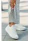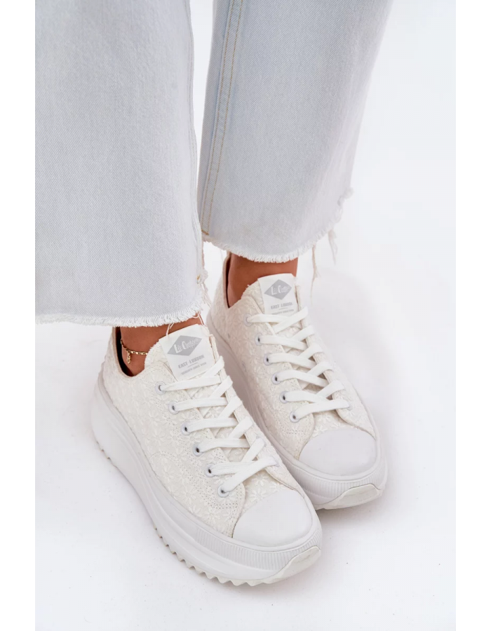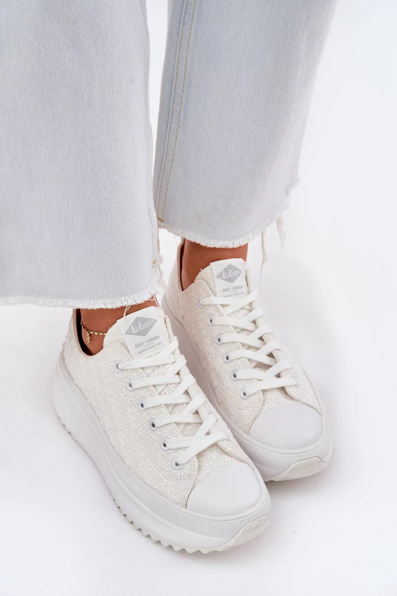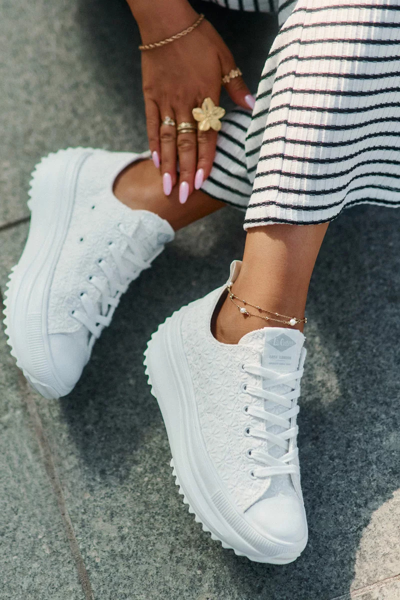 Dámské trampky Lee Cooper v bílé barvě jsou pohodlným volnočasovým modelem, který kombinuje klasický trampkový styl s moderní platformou. Platforma dodá botám výraznější siluetu a zároveň nabídne stabilní došlap při chůzi po městě nebo na cestách. Výšivka je jemným detailem, díky kterému trampky působí originálněji, ale stále zůstávají snadno kombinovatelné s většinou outfitů. Bílý základ vypadá svěže a čistě a skvěle ladí s džínovinou, neutrálními barvami i letními šaty.