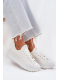 Bílý svršek udržujte pravidelným otíráním jemně navlhčeným hadříkem a výšivku čistěte opatrně měkkým kartáčkem. Boty nechte vždy volně vyschnout při pokojové teplotě a vyhněte se sušení na přímém zdroji tepla.