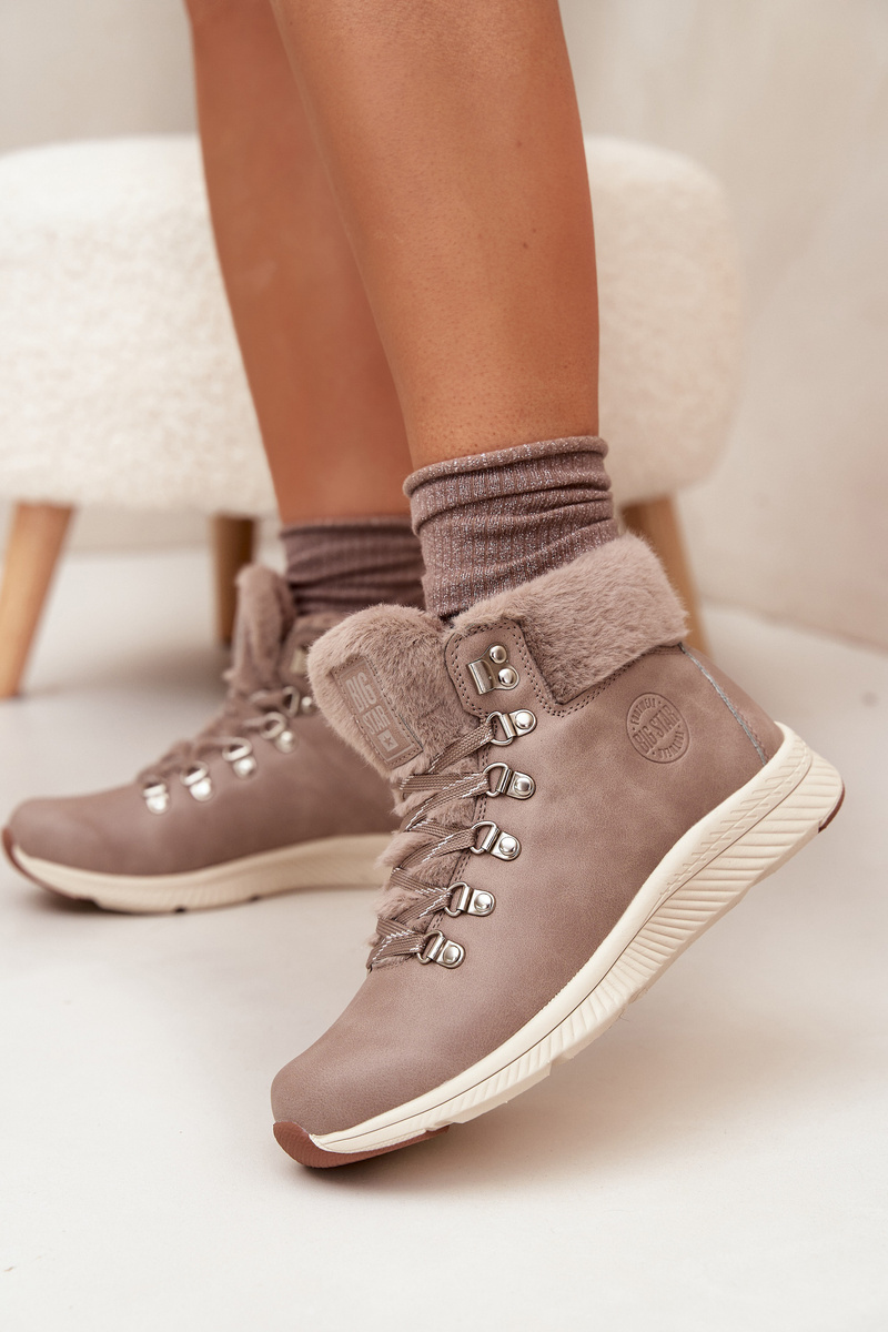 Dámské trapery Big Star v šedé barvě kombinují moderní design s praktickým zapínáním a teplou kožíškovou podšívkou, která poskytuje komfort v chladném počasí. Odolná podešev zajišťuje stabilitu a bezpečný krok na různých površích. Ideální volba pro každodenní nošení i volnočasové aktivity.