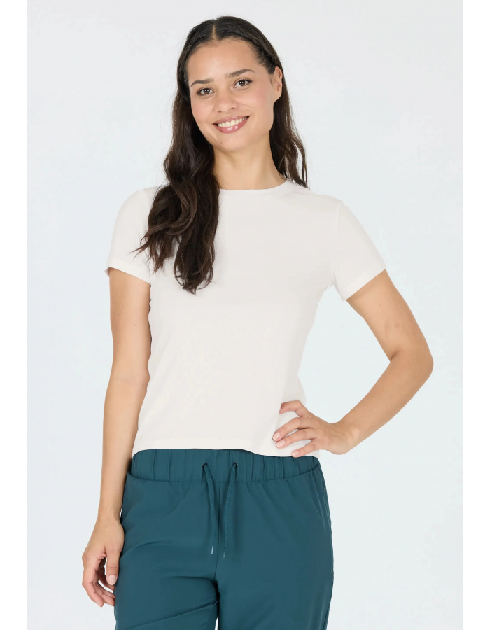Klasický kulatý výstřih a minimalistický design z něj činí univerzální kousek, který snadno zkombinujete s džínami, sportovními kalhotami nebo sukní.