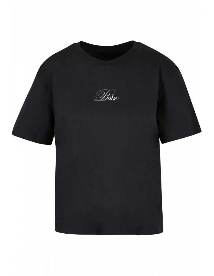 Toto tričko má jednoduchý a elegantní design. Na přední straně je malý bílý nápis "Babe" umístěný na středu hrudi. Nápis je napsán stylovým a jemným písmem, což tričku dodává decentní, ale zároveň výmluvný vzhled. Toto tričko je ideální pro minimalistický styl, který dokáže upoutat pozornost svou jednoduchostí a sofistikovaností.