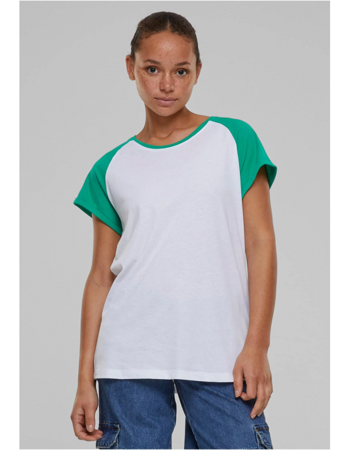 Dámské raglánové tričko Urban Classics v kontrastu je ideální pro obzvlášť uvolněné oblečení. Toto tričko s krátkým rukávem kombinuje měkkou žerzejovou tkaninu se sportovním oversized střihem a barevně kontrastními raglánovými rukávy, díky čemuž je ideální košilí pro dobrý pocit. Běžný střih a kulatý výstřih nabízejí pohodlné nošení a zdůrazňují neformální sportovní vzhled. Toto tričko je dostupné v různých barvách a ve velikostech XS až 5XL a hodí se pro širokou škálu stylů a je nezbytným základem každého šatníku.