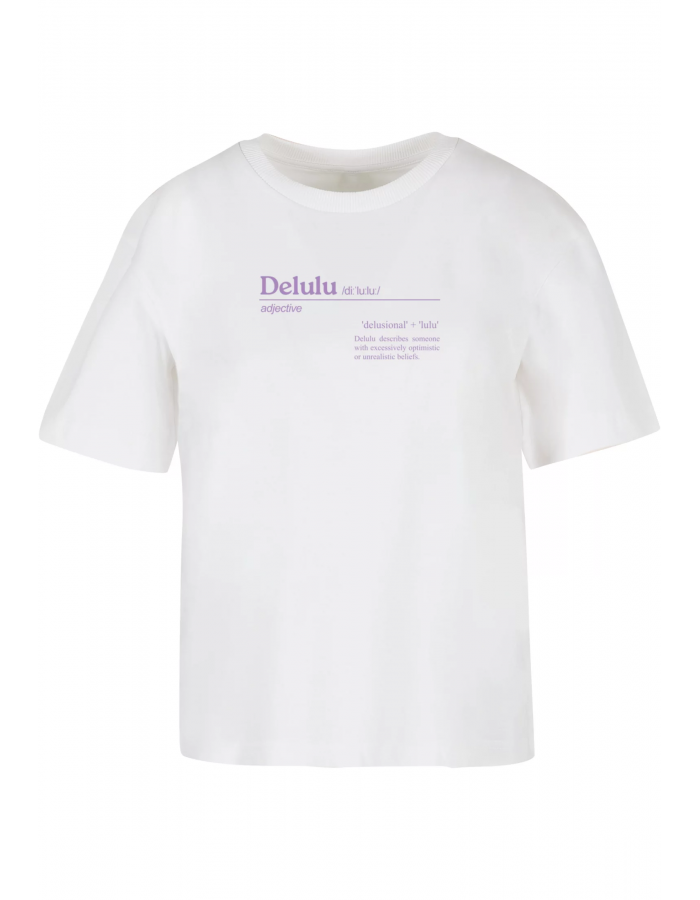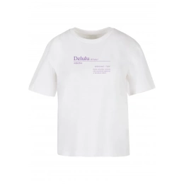 Dámské tričko "Delulu Definition" spojuje styl a pohodlí. Vyrobeno z jemné bavlny pro celodenní komfort. Na přední straně je výrazný potisk s definicí "Delulu".