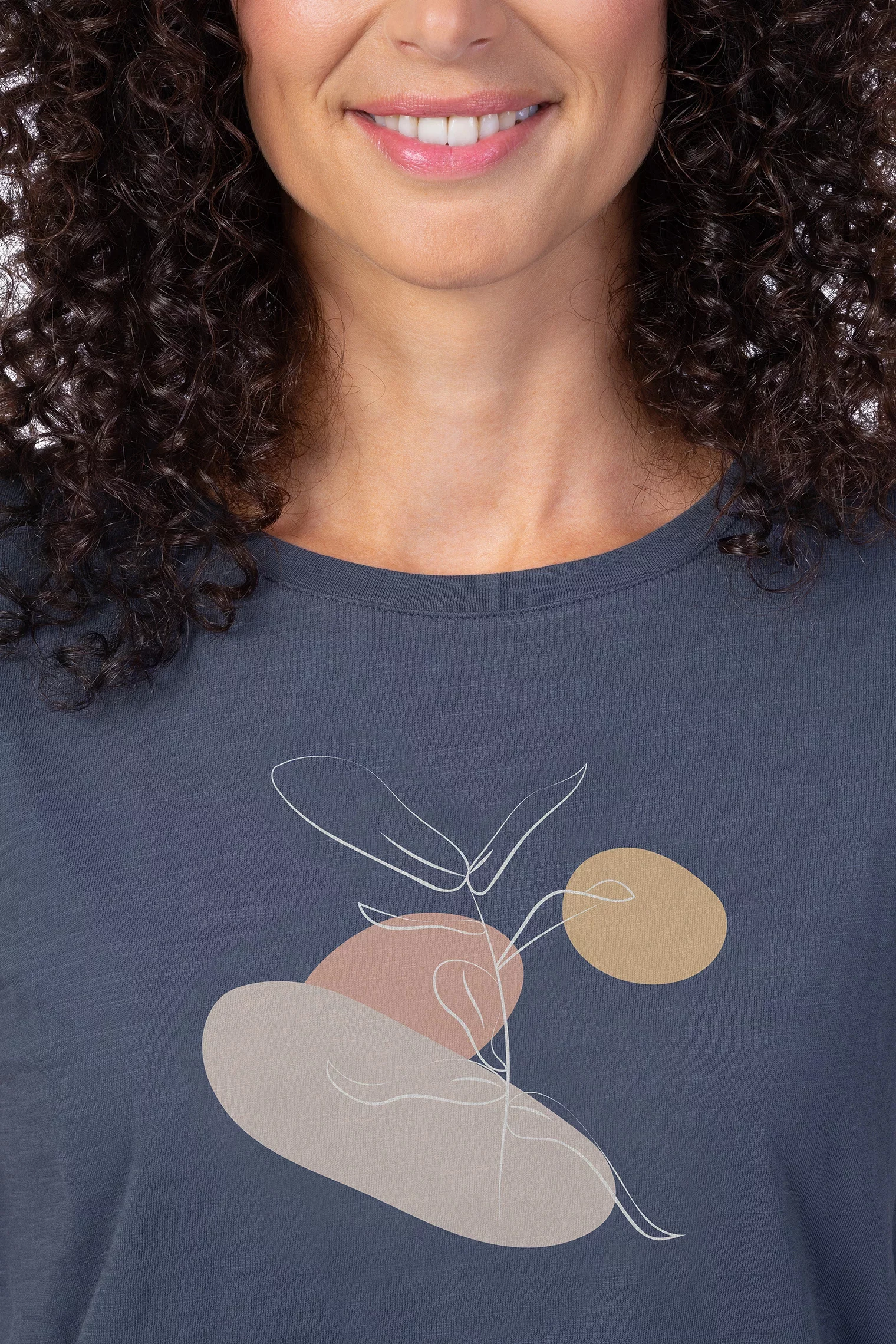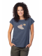 Dámské tričko ze 100% bavlny. Tričko ze 100% přírodního a kvalitního materiálu v pohodlném širokém - oversize střihu. Kulatý volnější výstřih a spadlé kratší rukávy. Strukturovaně žíhaný materiál s barevně decentním printem. Vyšší gramáž 160g/m2.