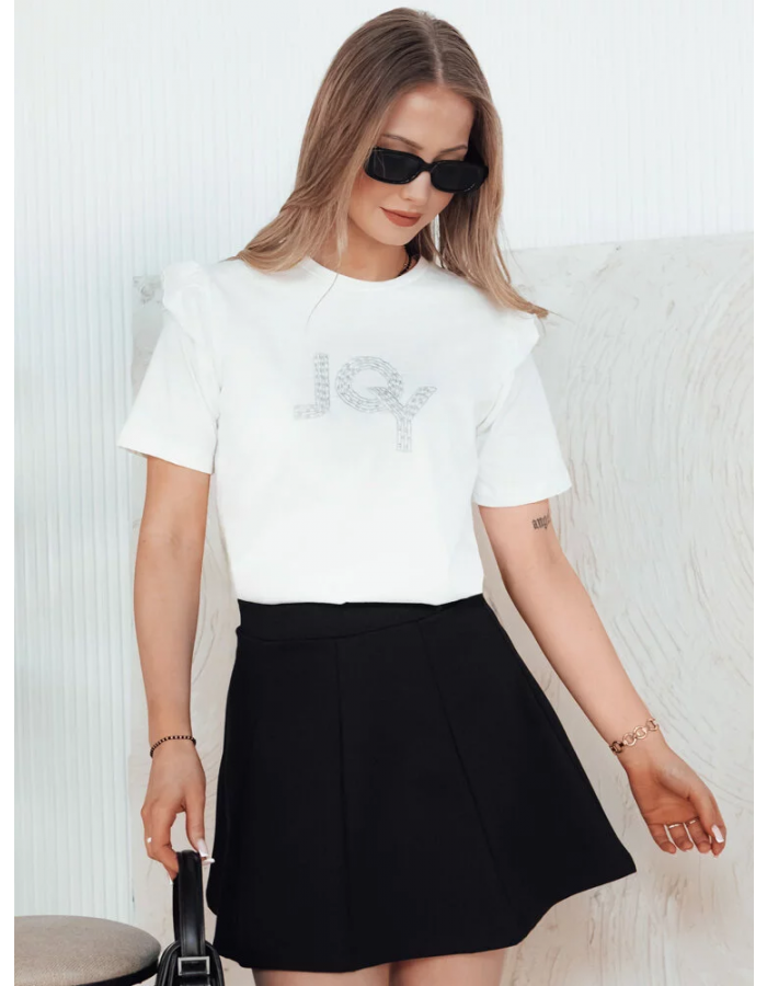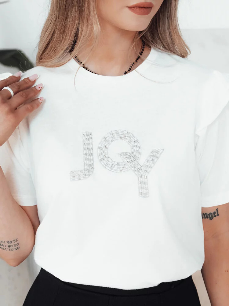Tričko JOY – Základem elegance je jednoduchost! Představ se ve stylu, který nikdy nevyjde z módy, výběrem trička JOY. Ten model je kombinací klasického střihu s jemnými, módními akcenty, jako jsou nabírané rukávy, které dodávají nádech originality. Centrálně umístěná výšivka není jen dekorací, ale i vyjádřením Tvého pozitivního přístupu. Vyberte si tričko JOY pro každodenní dávku radosti a pohodlí!