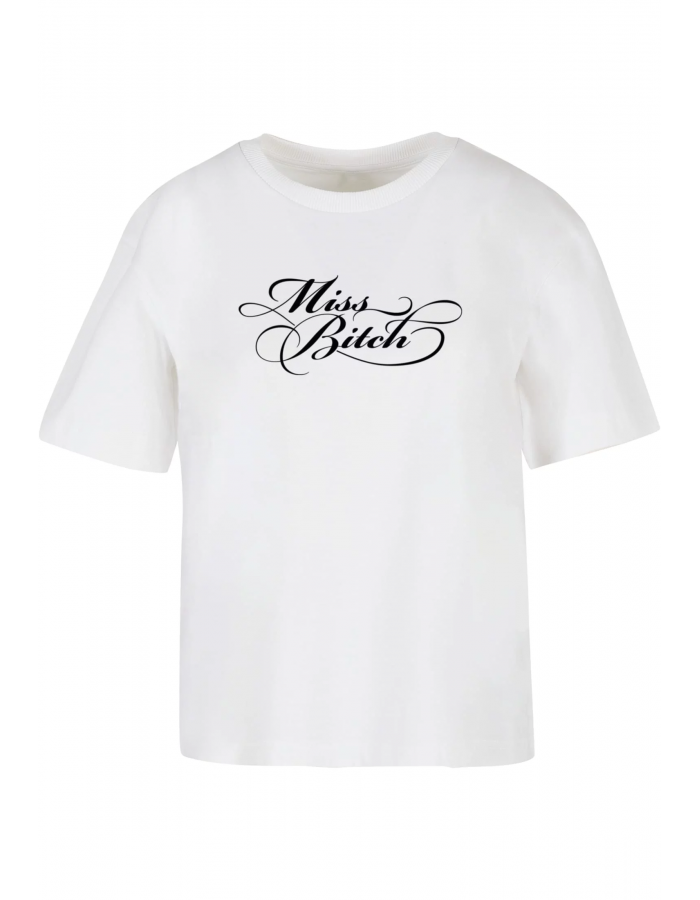 Toto tričko má jednoduchý, ale výrazný design. Na přední straně je umístěn velký nápis "Miss Bitch" v elegantním, ozdobném písmu. Tento design kombinuje eleganci s odvahou a sebevědomím, a je ideální pro ty, kteří chtějí vyjádřit svou silnou osobnost a nebojí se zaujmout pozornost. Tričko má minimalistický vzhled, který přesto dokáže udělat velký dojem díky kontrastu mezi jemností fontu a provokativním textem.