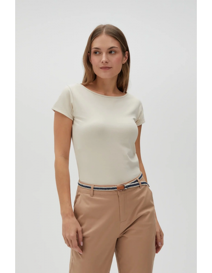 95% BAVLNA, 5% ELASTAN Béžová halenka je perfektní volbou pro každou ženu, která si cení pohodlí a jednoduchosti. Vyrobeno z měkké bavlny, hladké a příjemné na dotek. Krátké rukávy a lodičkový výstřih dodávají halence jedinečné kouzlo. Vypasovaný střih zvýrazňuje ženskou siluetu a zároveň zajišťuje maximální pohodlí při nošení.