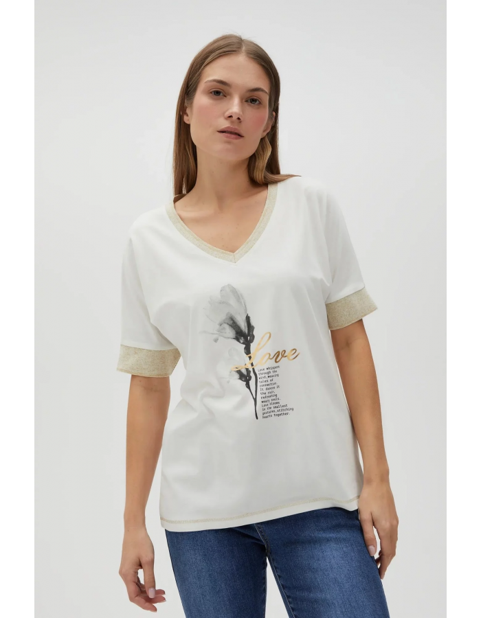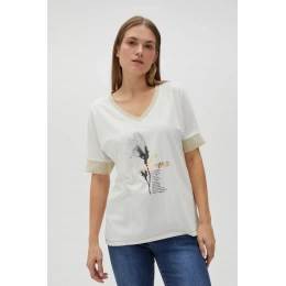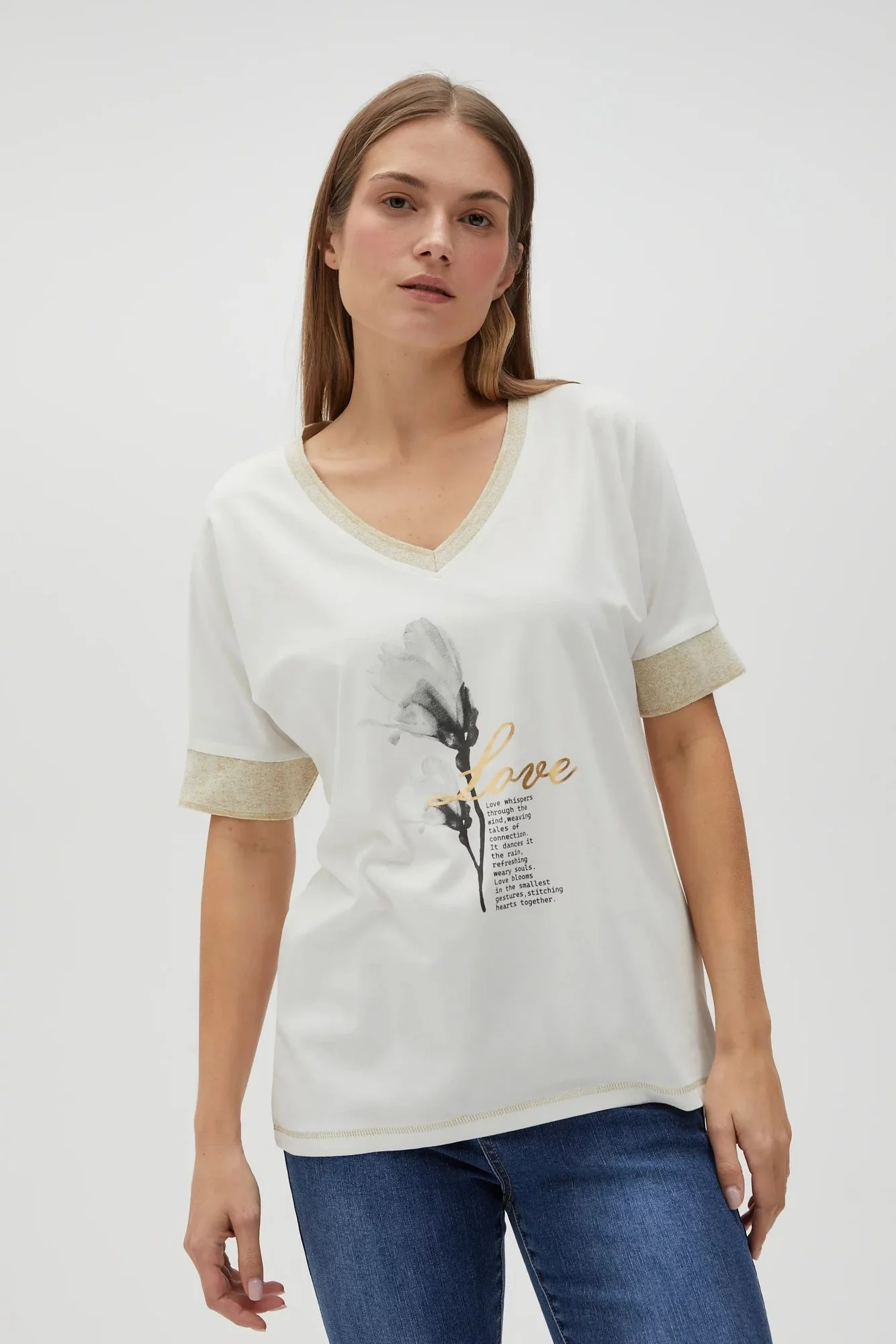 95% BAVLNA, 5% ELASTAN Halenka krémové barvy, bez vzoru, z hladké bavlny. Má potisk, netopýří střih a výstřih do V. Je pohodlná a lehká, ideální do teplých dnů. Perfektní volba pro letní setkání s přáteli nebo večerní výlety. Skvěle bude vypadat k džínům, sukni nebo šortkám. Díky svému univerzálnímu designu se hodí k mnoha stylům.