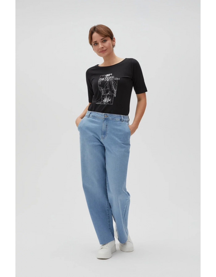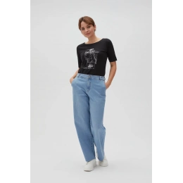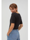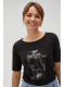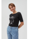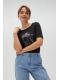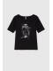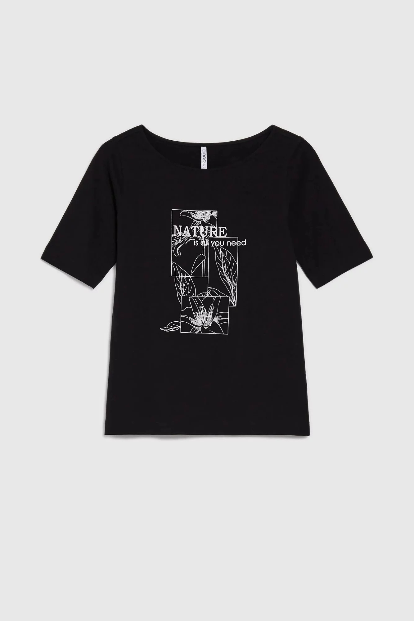 SKŁAD MATERIAŁOWY: 95% BAWEŁNA, 5% ELASTAN Bluzka w kolorze czarnym wykonana z miękkiej bawełny. Posiada nadruk na przodzie. Krótki rękaw oraz dopasowany krój sprawiają, że doskonale podkreśla sylwetkę. Dekolt w łódkę dodaje elegancji i sprawia, że bluzka jest niezwykle kobieca. Ta bluzka będzie idealna na wieczorne wyjścia, spotkania ze znajomymi czy randki. Doskonale sprawdzi się zarówno w połączeniu z jeansami, spódnicą jak i eleganckimi spodniami. Dzięki swojemu uniwersalnemu designowi, można ją nosić na wiele różnych okazji