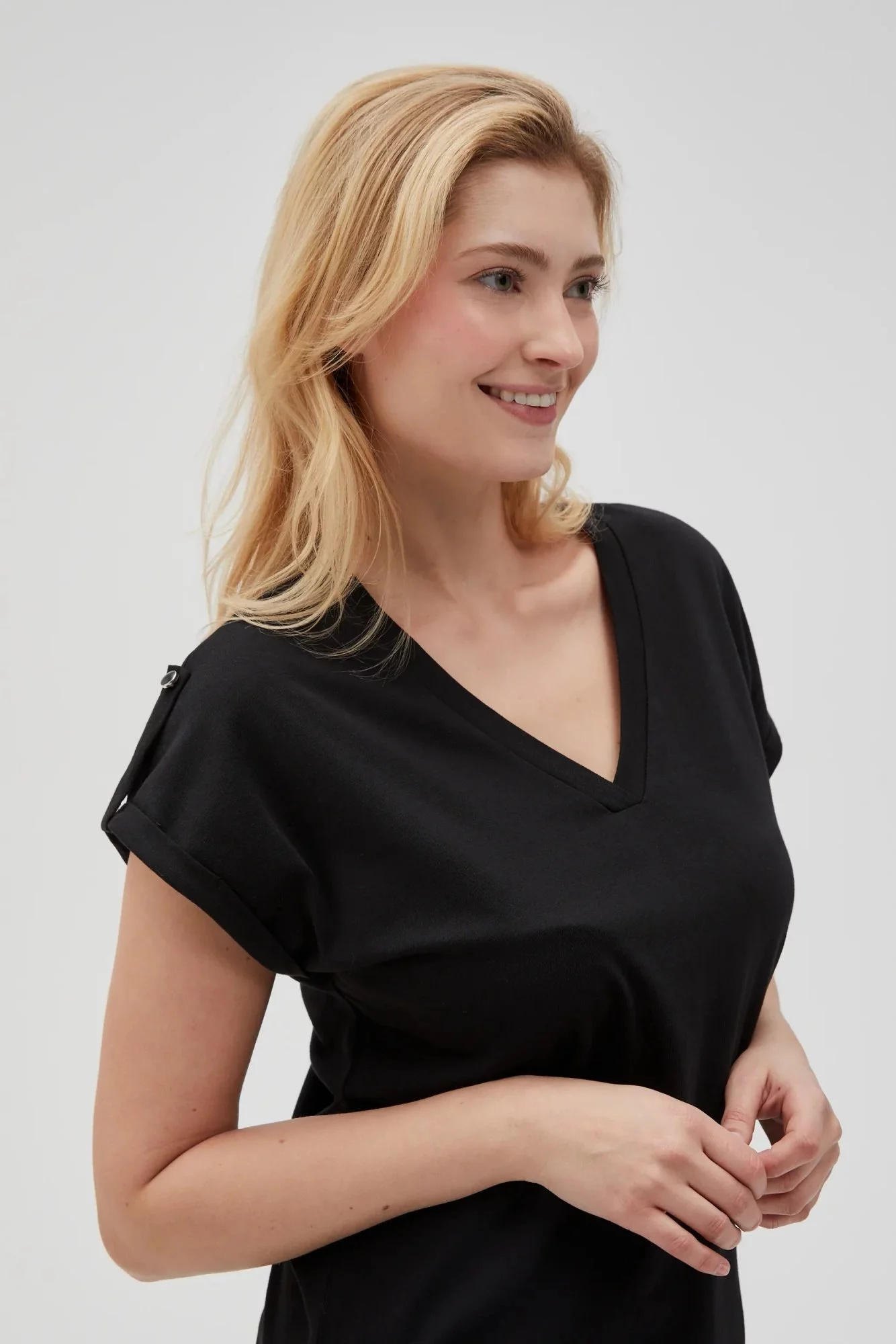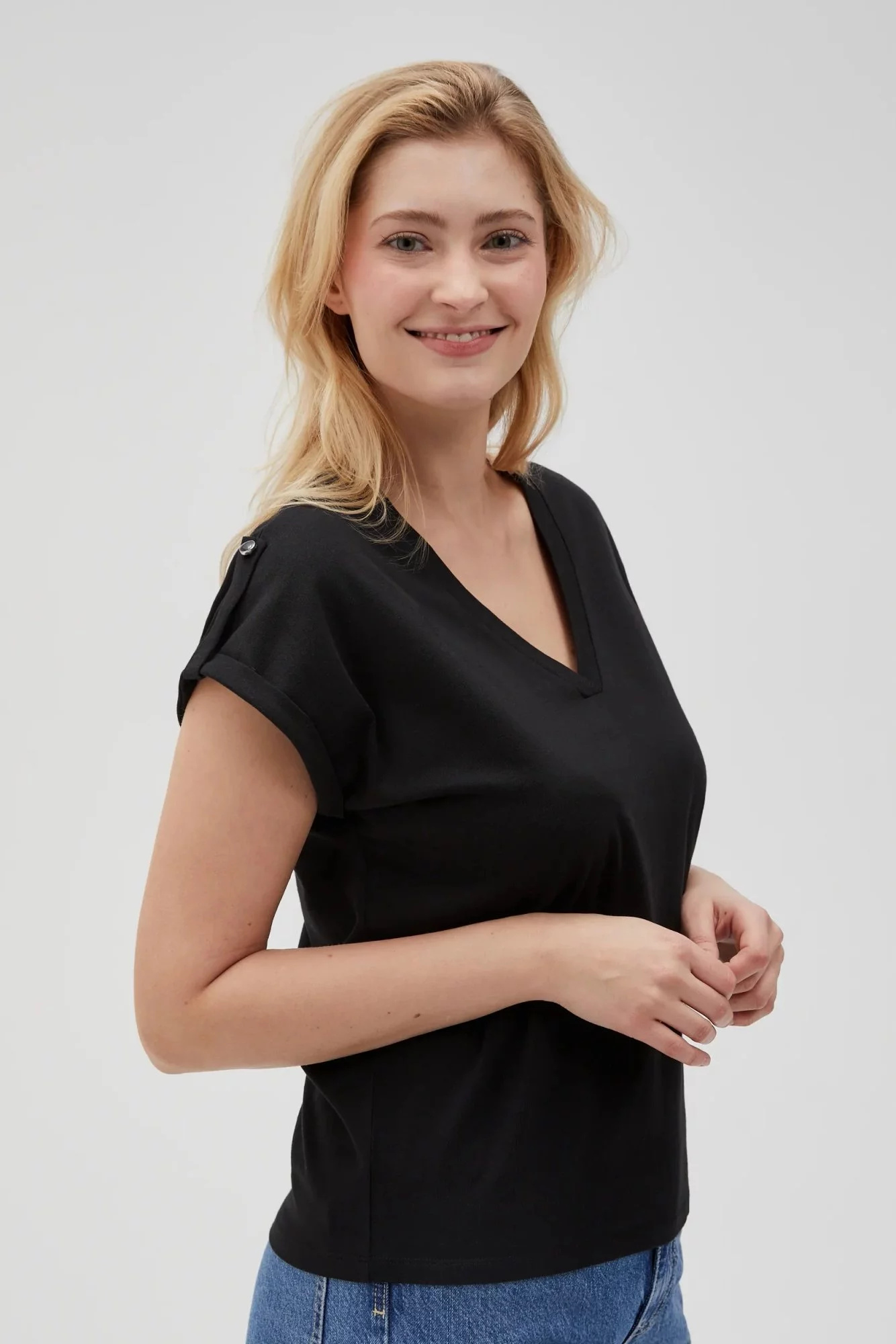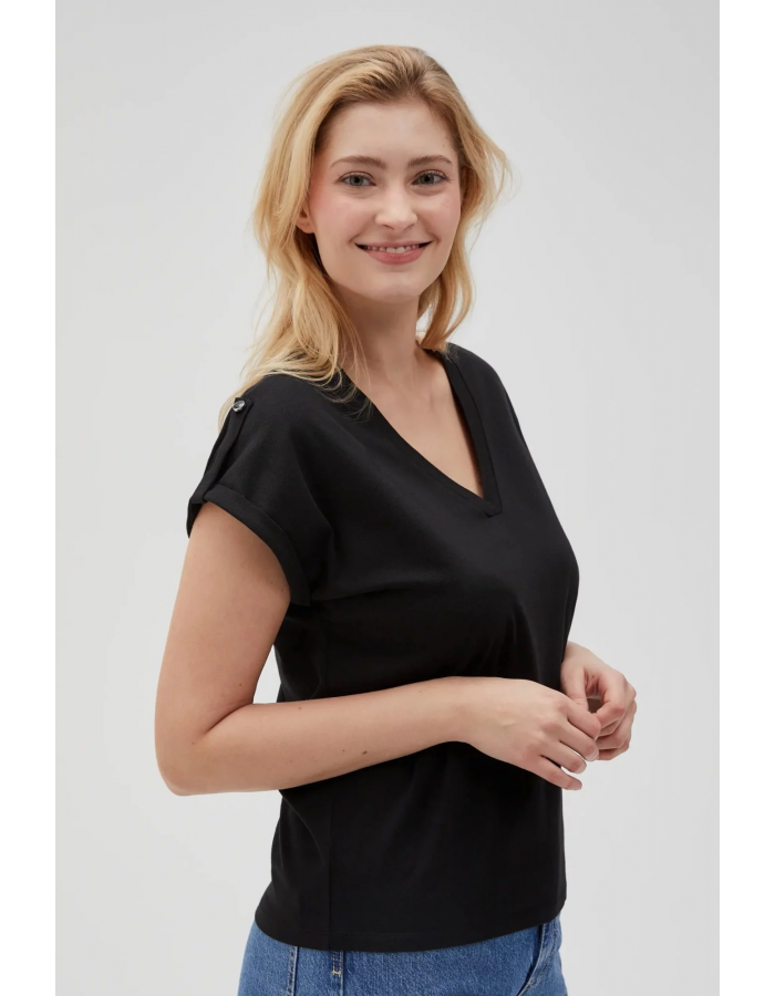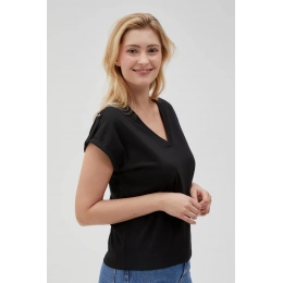 95% BAVLNA, 5% ELASTAN Černá halenka je perfektní volbou pro ženy, které oceňují pohodlí a styl. Vyrobeno z měkké bavlny, zaručuje pohodlí po celý den. Absence vzoru, hladký povrch a volný střih dělají halenku nadčasovou a snadno se hodí k různým stylům. Výstřih do V dodává eleganci. Halenka je perfektní volbou pro mnoho příležitostí - jak pro každodenní outfity, tak pro večerní výlety. Skvěle bude vypadat jak k džínům a teniskám, tak k sukni a vysokým podpatkům. Díky svému univerzálnímu designu se bude hodit jak k ležérním, tak k elegantnějším stylům.