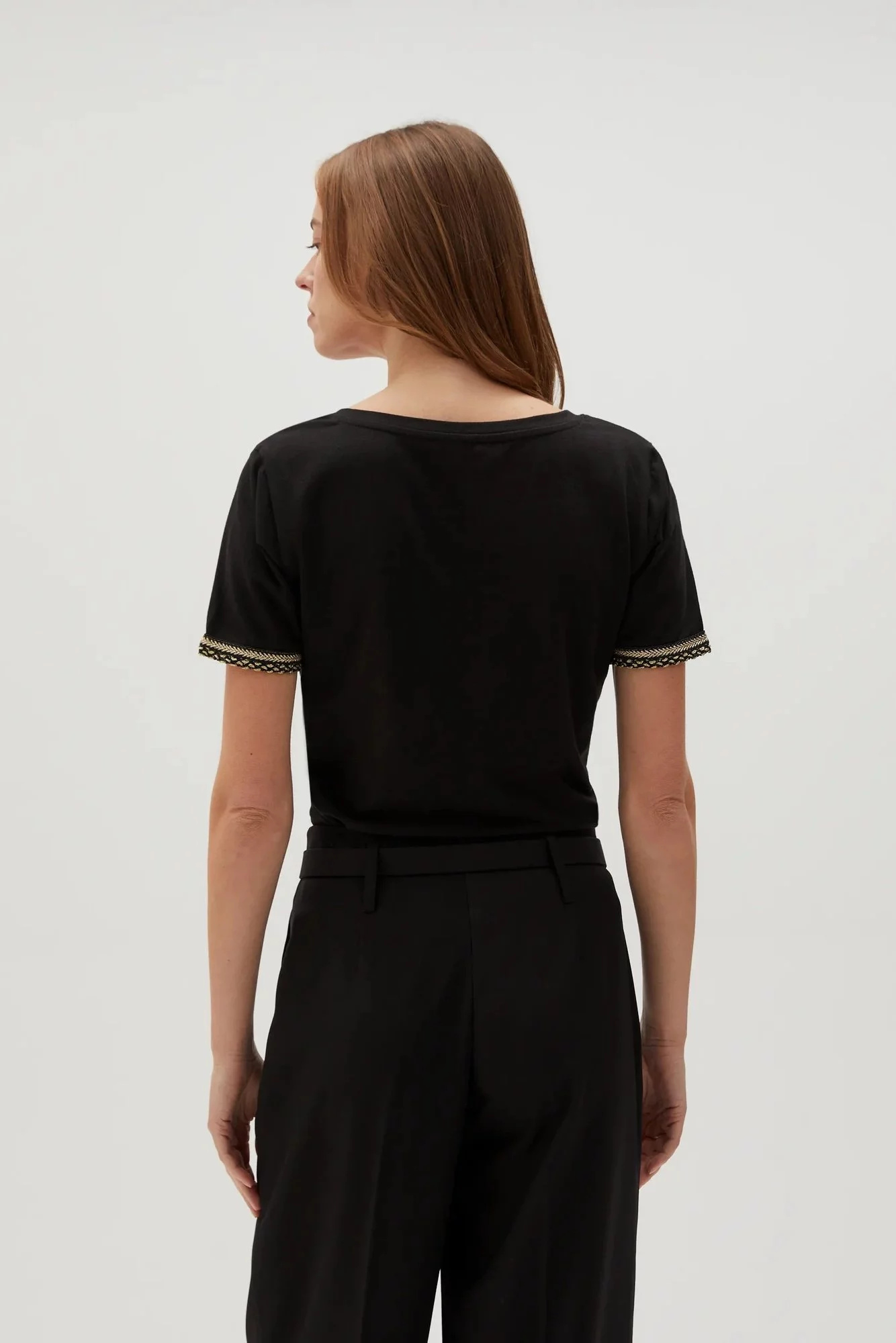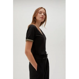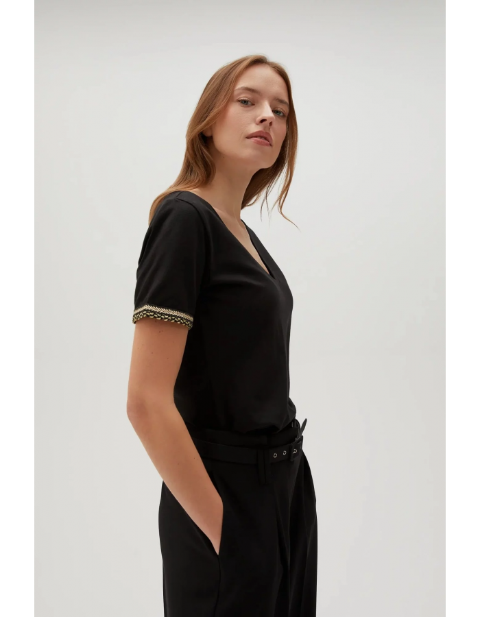 95 % BAVLNA, 5 % ELASTAN Elegantní černá halenka je perfektní volbou pro mnoho příležitostí. Vyrobeno z vysoce kvalitní bavlny, hladké a jemné na dotek. Krátké rukávy a vypasovaný střih zdůrazňují ženskou siluetu. Výstřih do V dodává jemný nádech elegance, díky čemuž je halenka ideální jak pro každodenní nošení, tak pro zvláštní příležitosti. Skvěle se hodí k džínům, sukni i klasickým kalhotám. Tohle nesmí chybět v šatníku každé ženy!
