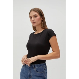 95% BAVLNA, 5% ELASTAN Černá halenka je perfektním návrhem pro každou ženu, která si cení pohodlí a stylu. Vyrobeno z měkké bavlny, hladké a bez vzoru, zajišťuje pohodlí po celý den. Krátké rukávy a lodičkový výstřih dodávají halence eleganci a ženský půvab. Vypasovaný střih zvýrazňuje přednosti siluety, díky čemuž se každá žena cítí sebejistě a módně.