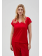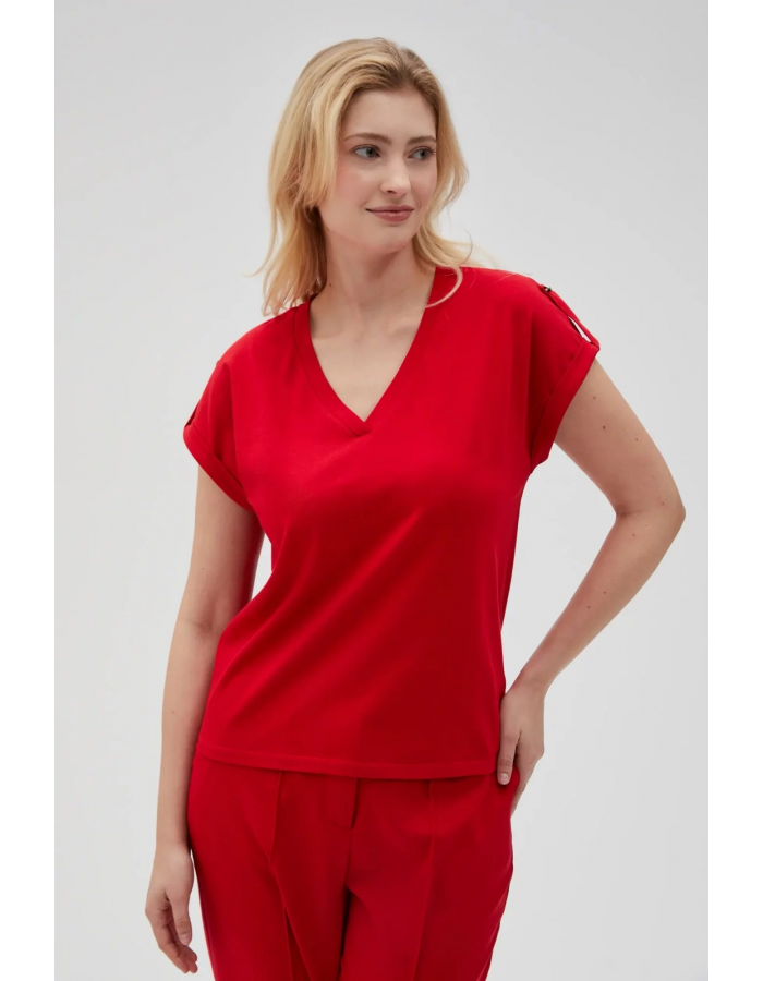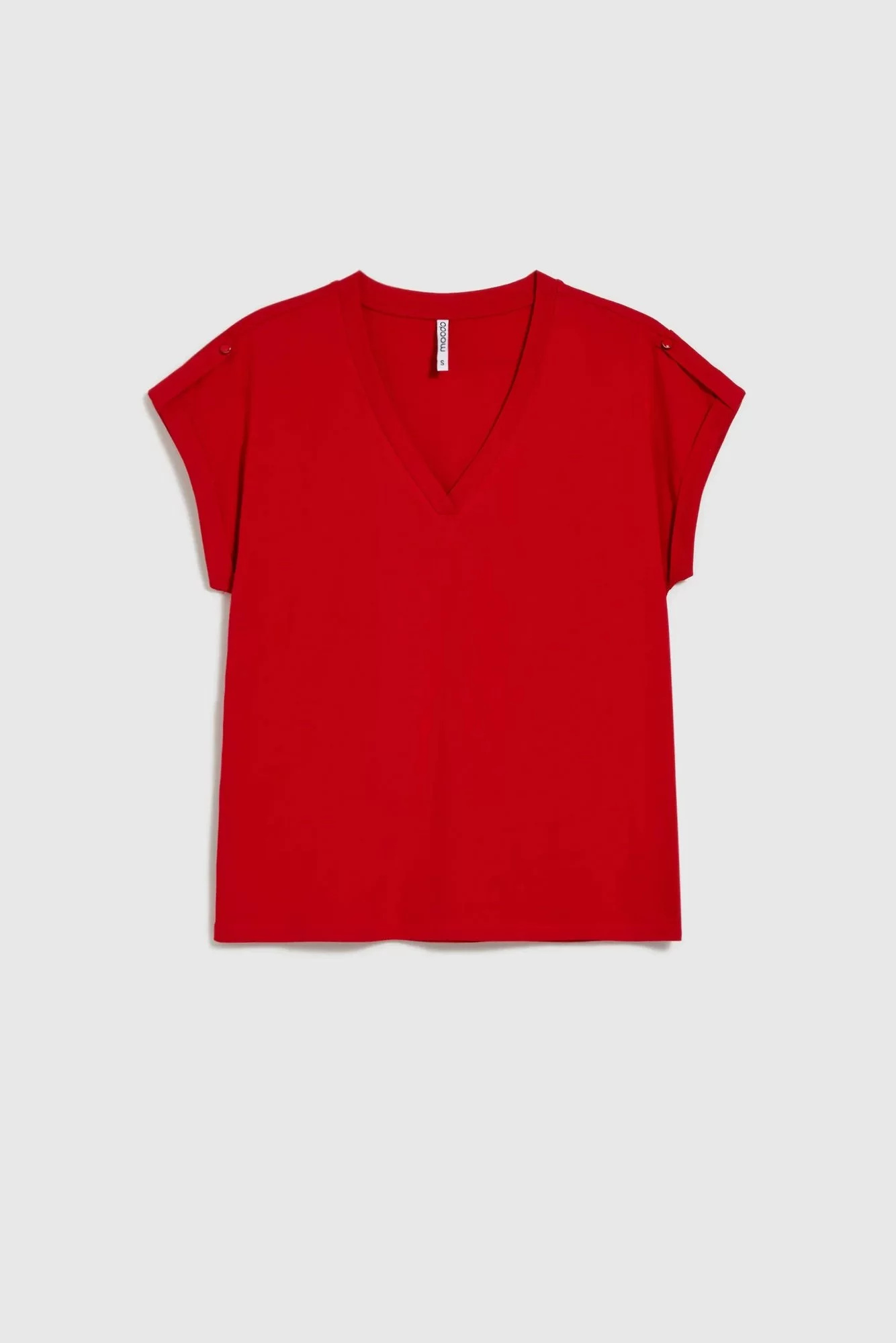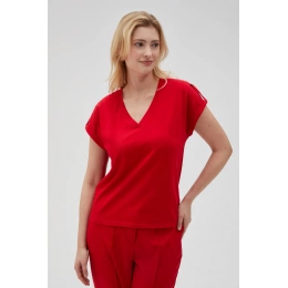 95% BAVLNA, 5% ELASTAN Červené tričko je perfektní volbou pro každou ženu, která si cení pohodlí a stylu. Vyrobeno z měkké bavlny, hladké a bez vzoru, poskytne pohodlí po celý den. Model s krátkým rukávem, výstřihem do V a volným střihem skvěle padne každé postavě. Tričko je ideální na každodenní výlety, setkání s přáteli nebo na procházku. Skvěle se hodí k džínům, sukni, šortkám nebo elegantním kalhotám. Díky svému klasickému designu se snadno hodí k různým stylům.