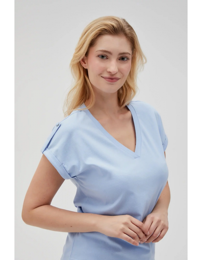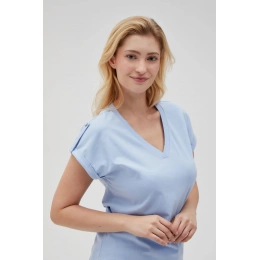 95% BAVLNA, 5% ELASTAN Modrá bavlněná halenka je perfektní volbou pro ženy, které oceňují pohodlí a styl. Hladký materiál a volný střih zajistí pohodlí po celý den. Model s krátkými rukávy a výstřihem do V dodává lehkost a vypadáš fenomenálně. Bude perfektní volbou na letní výlety s přáteli, rande nebo procházku po pláži. Skvěle bude vypadat jak k letním sukním, tak k džínům. Díky svému univerzálnímu designu se hodí jak na každodenní nošení, tak na speciální příležitosti.