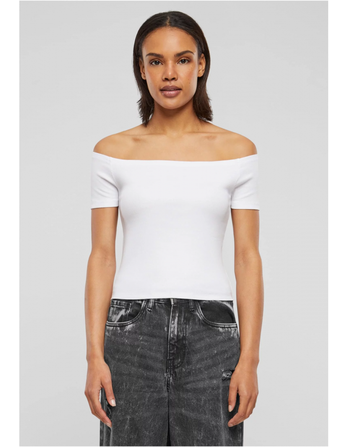 Dámské tričko Organic Off Shoulder Rib - bílé Velikost: L