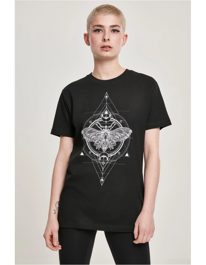 Toto dámské tričko Moth je filigránové, tajemné a ušlechtilé. Pokud hledáte něco speciálního a ne samozřejmého, tato košile je pro vás. Potisk s centrálně umístěným molem obklopeným geometrickými tvary dodává klasicky střižené košili jedinečný nádech. Nenechte si to ujít! Poznámka: Střih tohoto produktu je přizpůsoben trendu oversize.